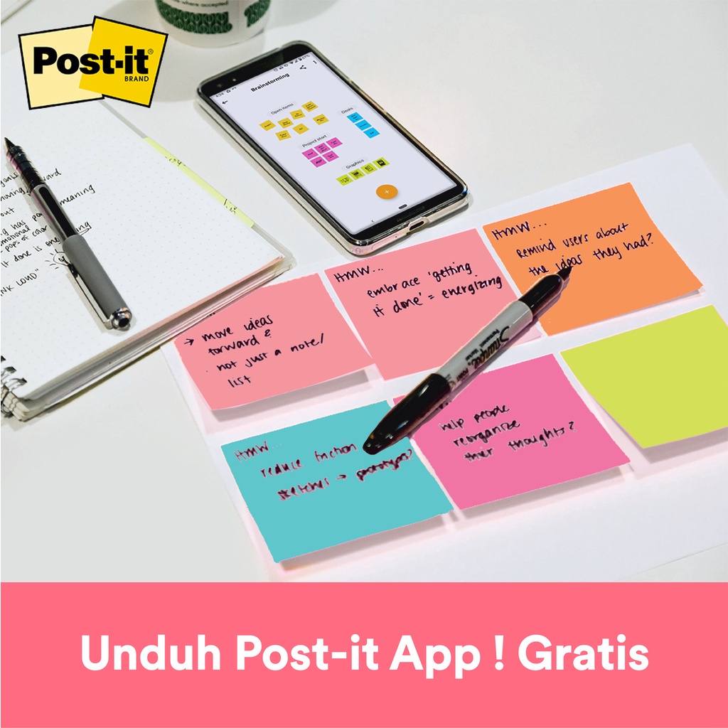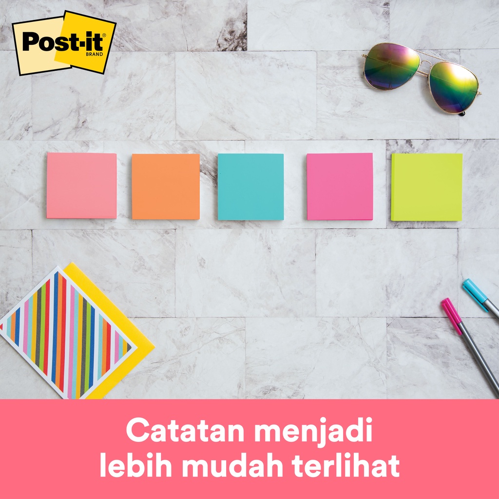 3M™ Post-it® Notes, 654-5AN, Menempel berulah kali pada kertas, 5 pad, 76x76 mm, Untuk pemakaian sehari-hari