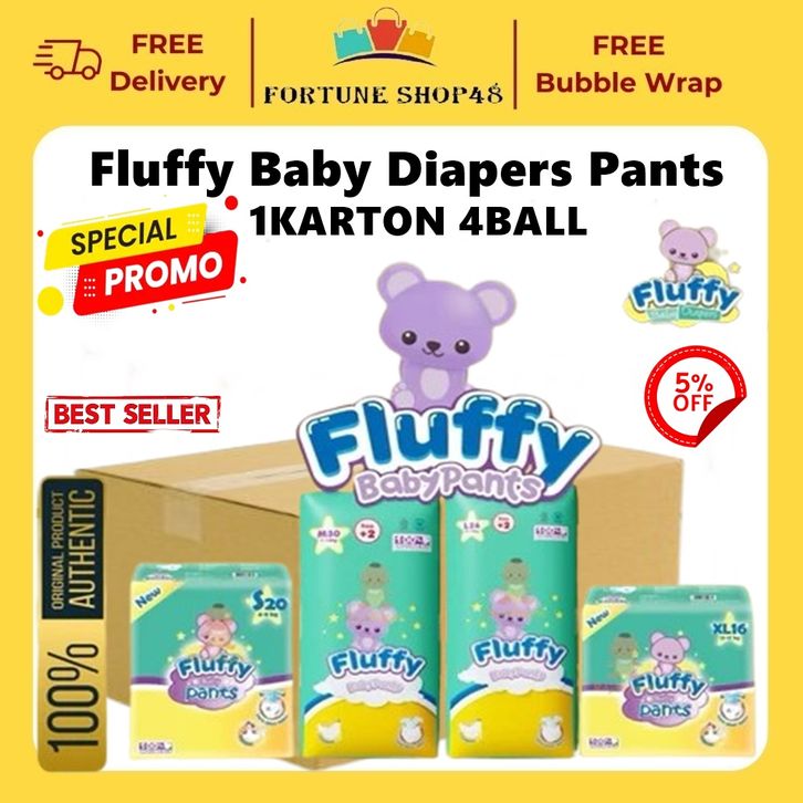 Fluffy Baby Diapers Pants Popok Celana 1Karton 4Ball - GRATIS ONGKIR