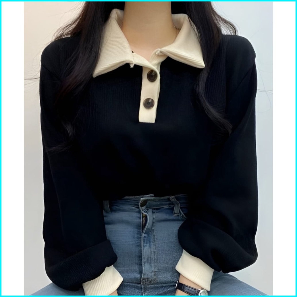 Vallina - Kanya Collar Button Sweater Oversized Outerwear Remaja Wanita Korean Style Premium