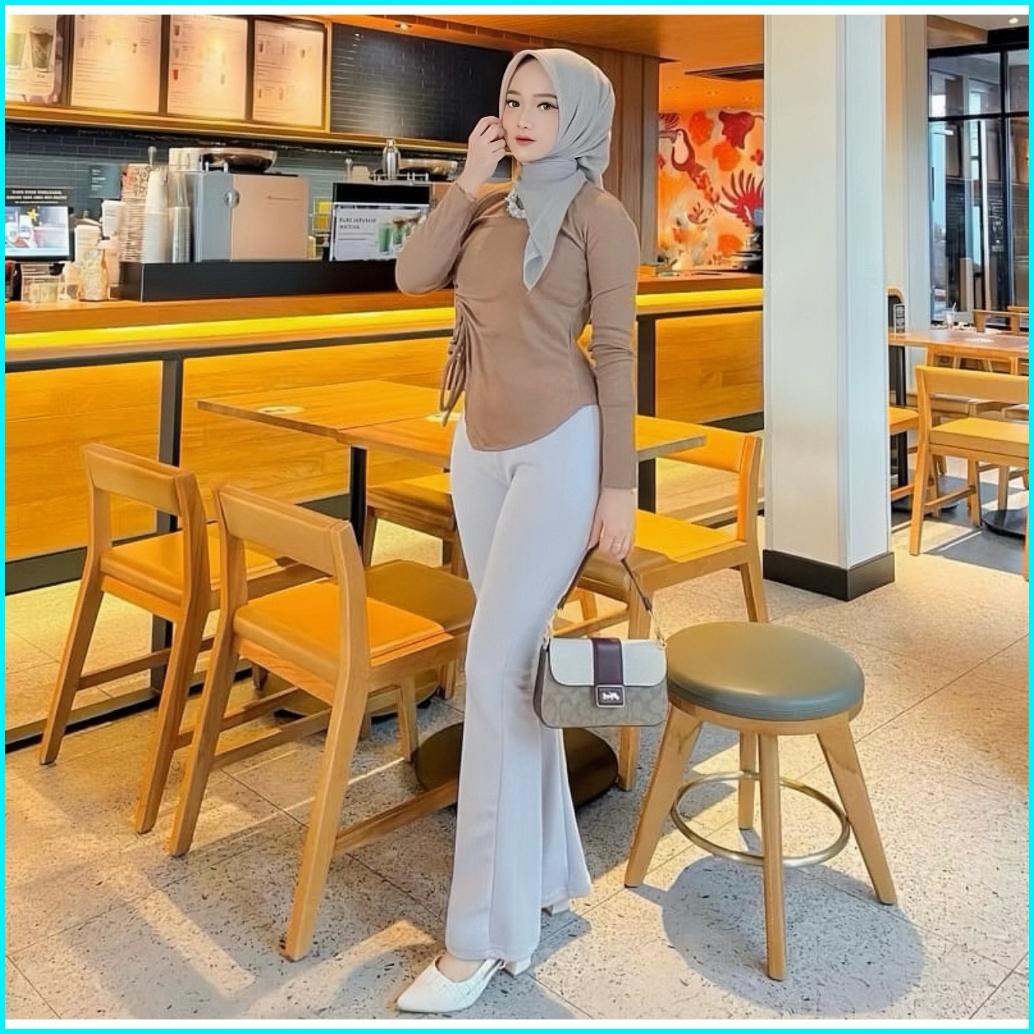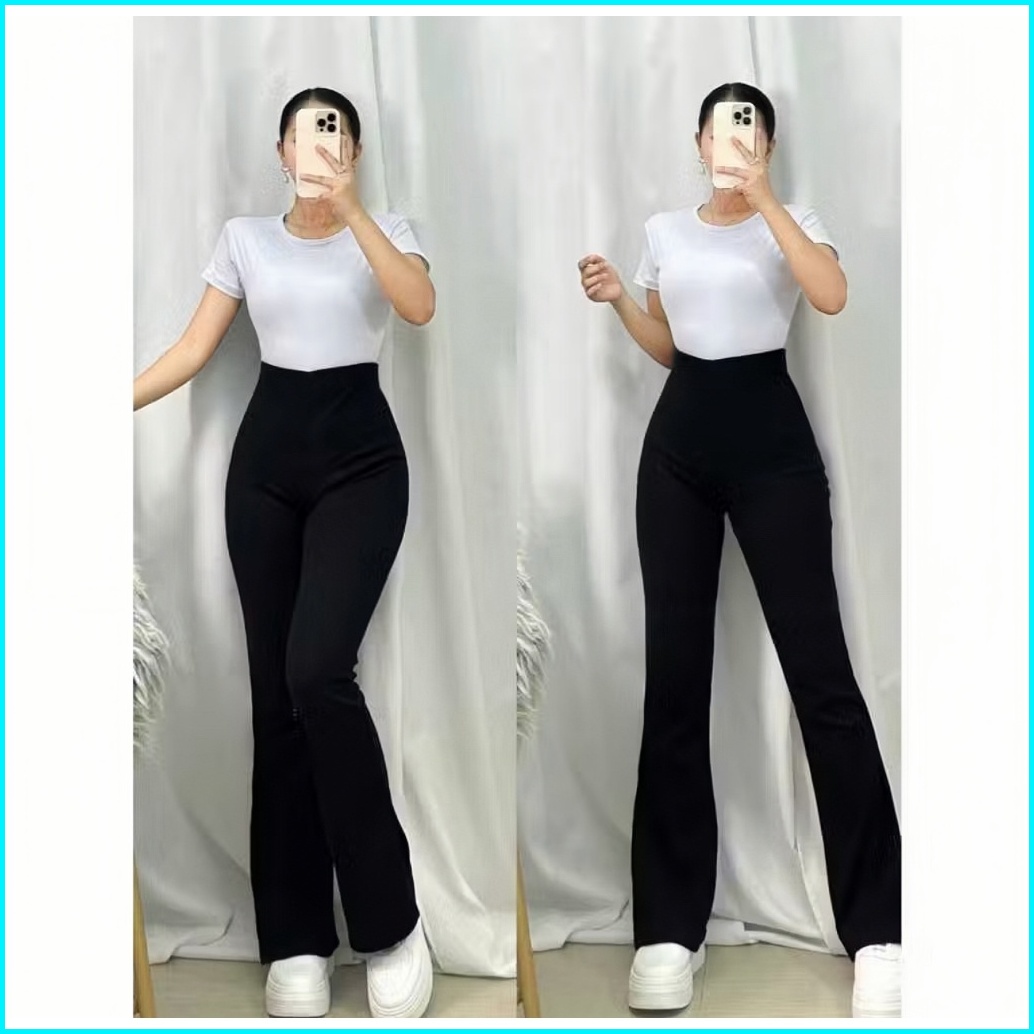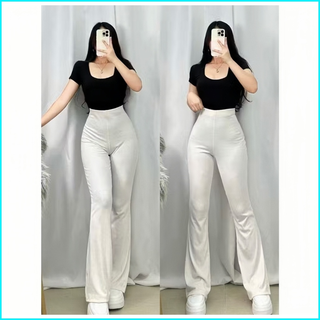 Celana Fit And Flare Pants Cutbray Scuba Pinggang Highwaist Bahan Stretch Melar Elastis Kulot Cutbray Scuba