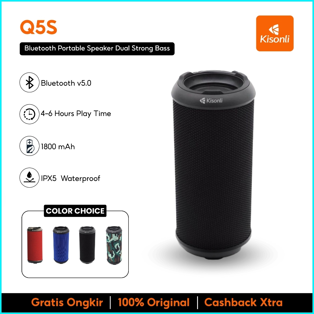Kisonli Speaker Bluetooth Portable Q5s Dual Bass Support Fm Radio Tf Aux