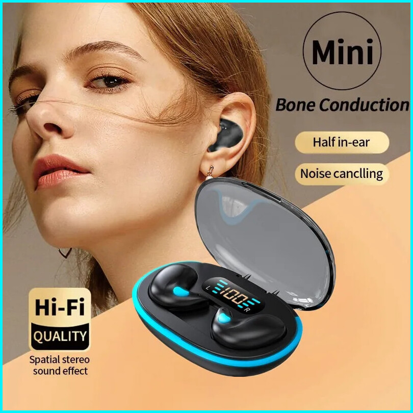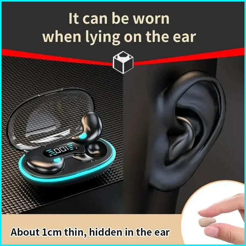 Mini Slim Wireless Earphone Tws X55 Sleep Headset Bone Conduction Clip On Bluetooth 5.3 Headset Led Display Hifi Stereo