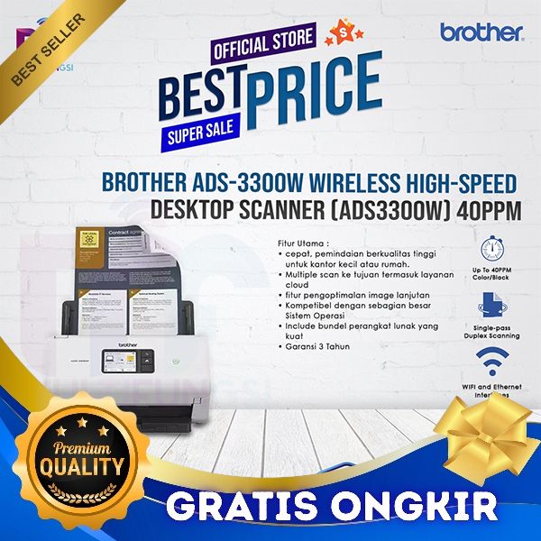 [Mall] Brother ADS-3300W Wireless High-Speed Desktop Scanner (ADS3300W) 40PPM
