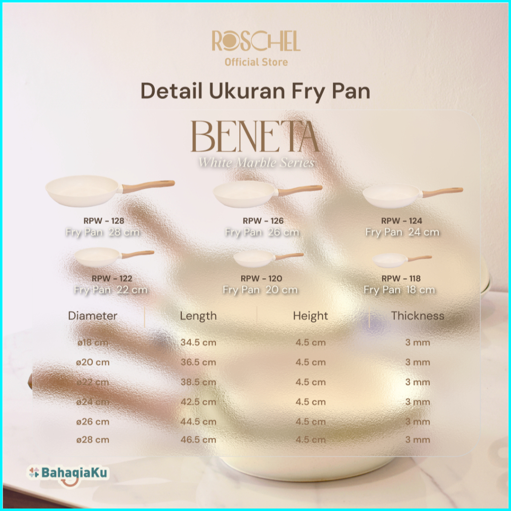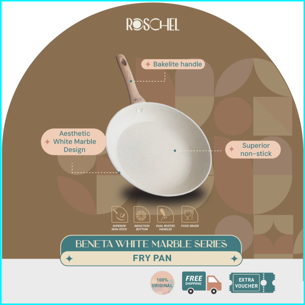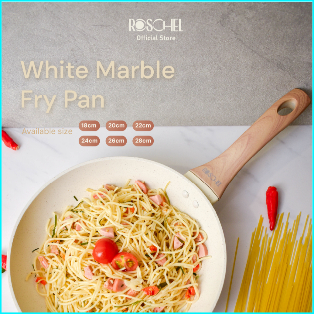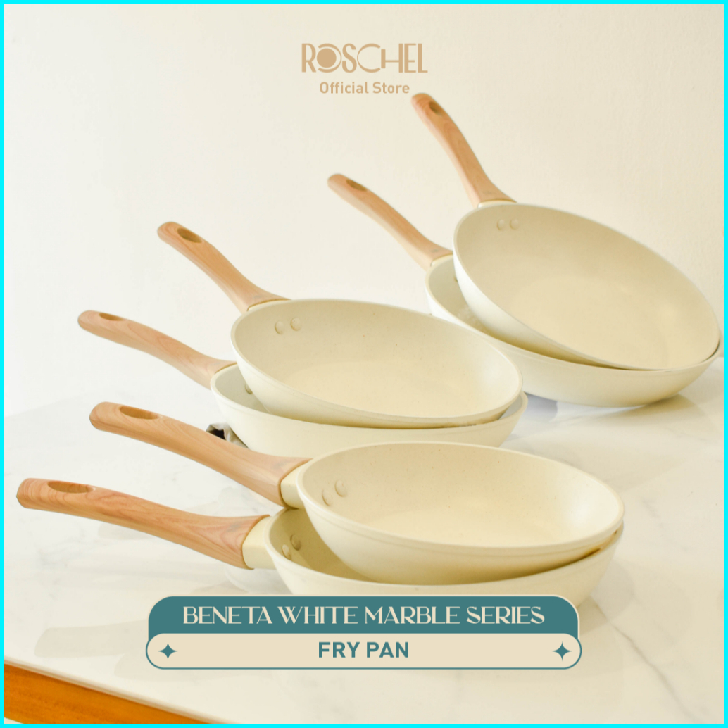 Roschel Beneta White Marble Coating Non-stick Frypan 18 20 22 24 26 28 Cm Panci Wajan Penggorengan Fry Pan Anti Lengket