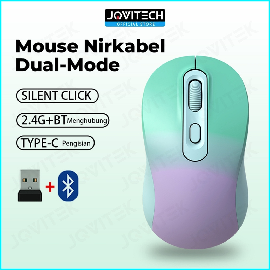 Jovitech Dual Mode Colorful Wireless Mouse Silent Click Bluetooth Usb Receiver Optical Rechargeable 2.4g Type-c Support