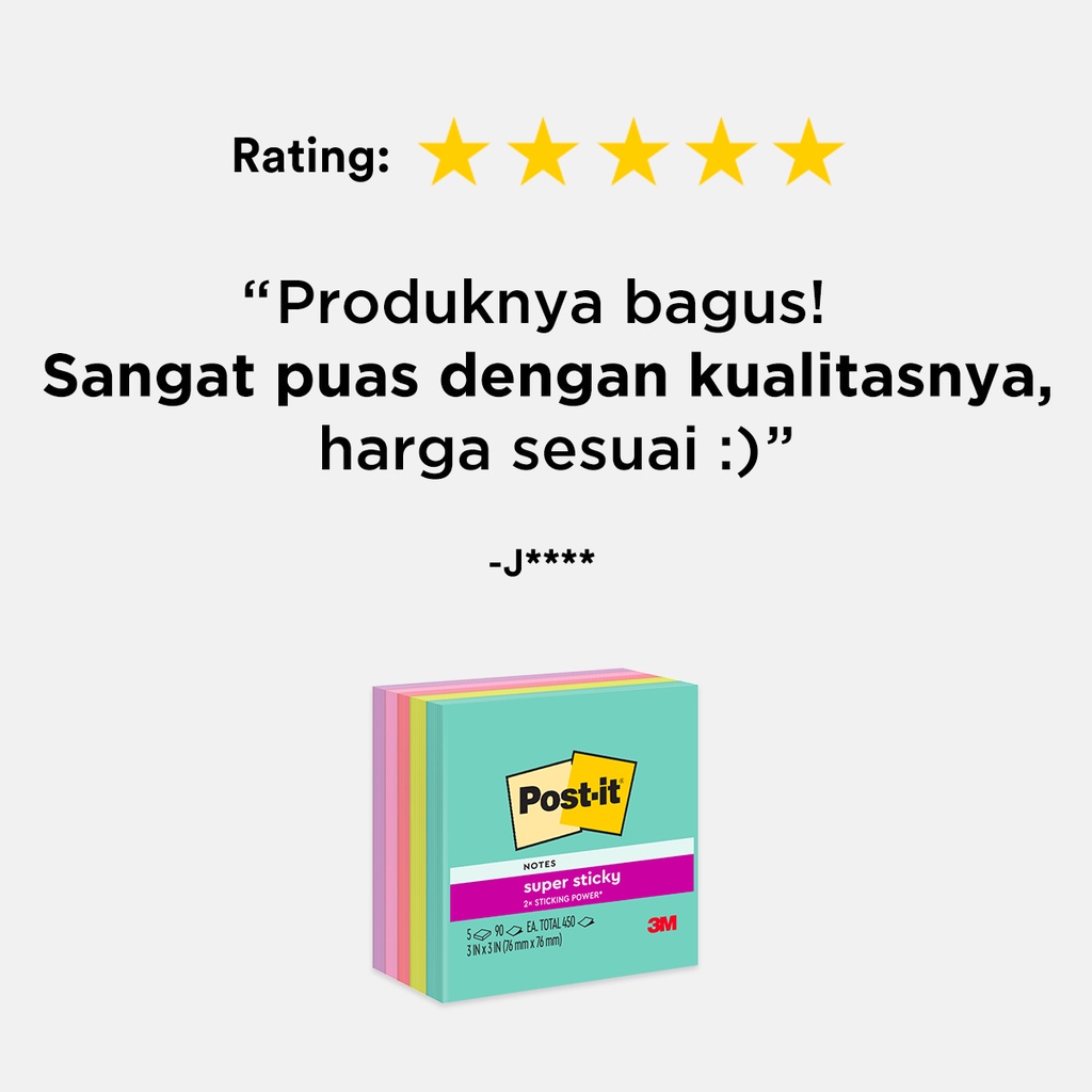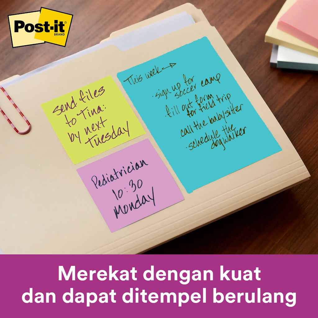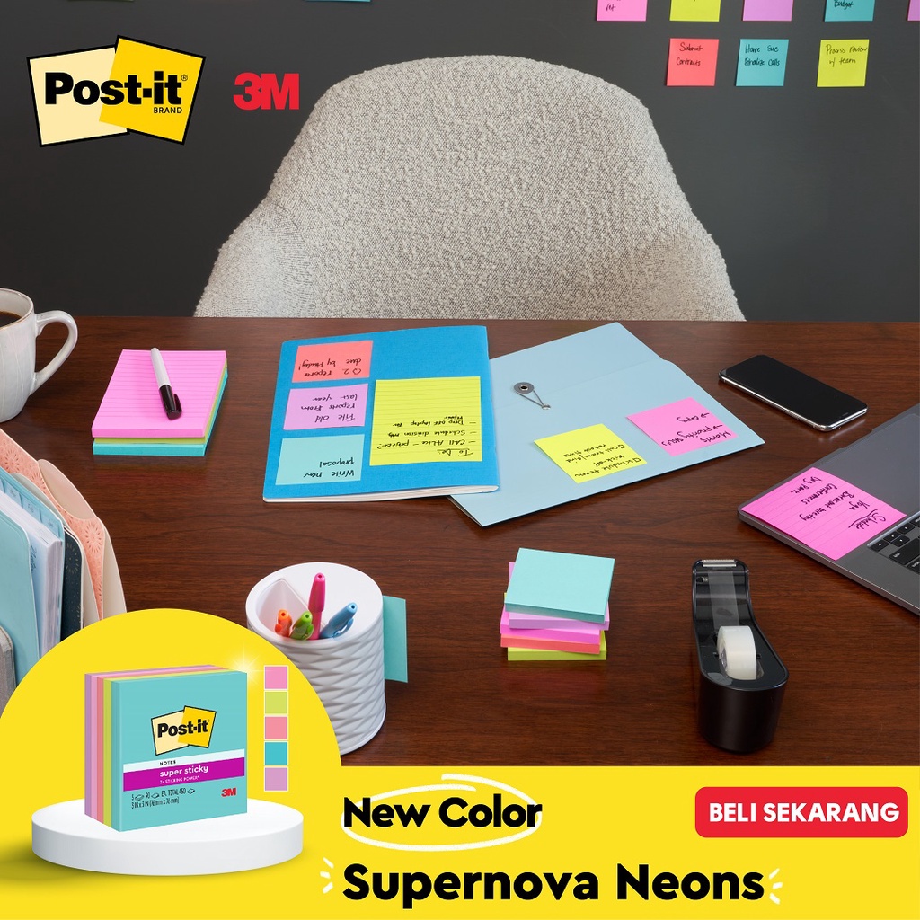 3M™ Post-it® Super Sticky Notes Supernova Neons, Memo Tempel, 654-5SSMIA, 2x Lebih merekat, 5 pad, 76x76 mm, Untuk berba