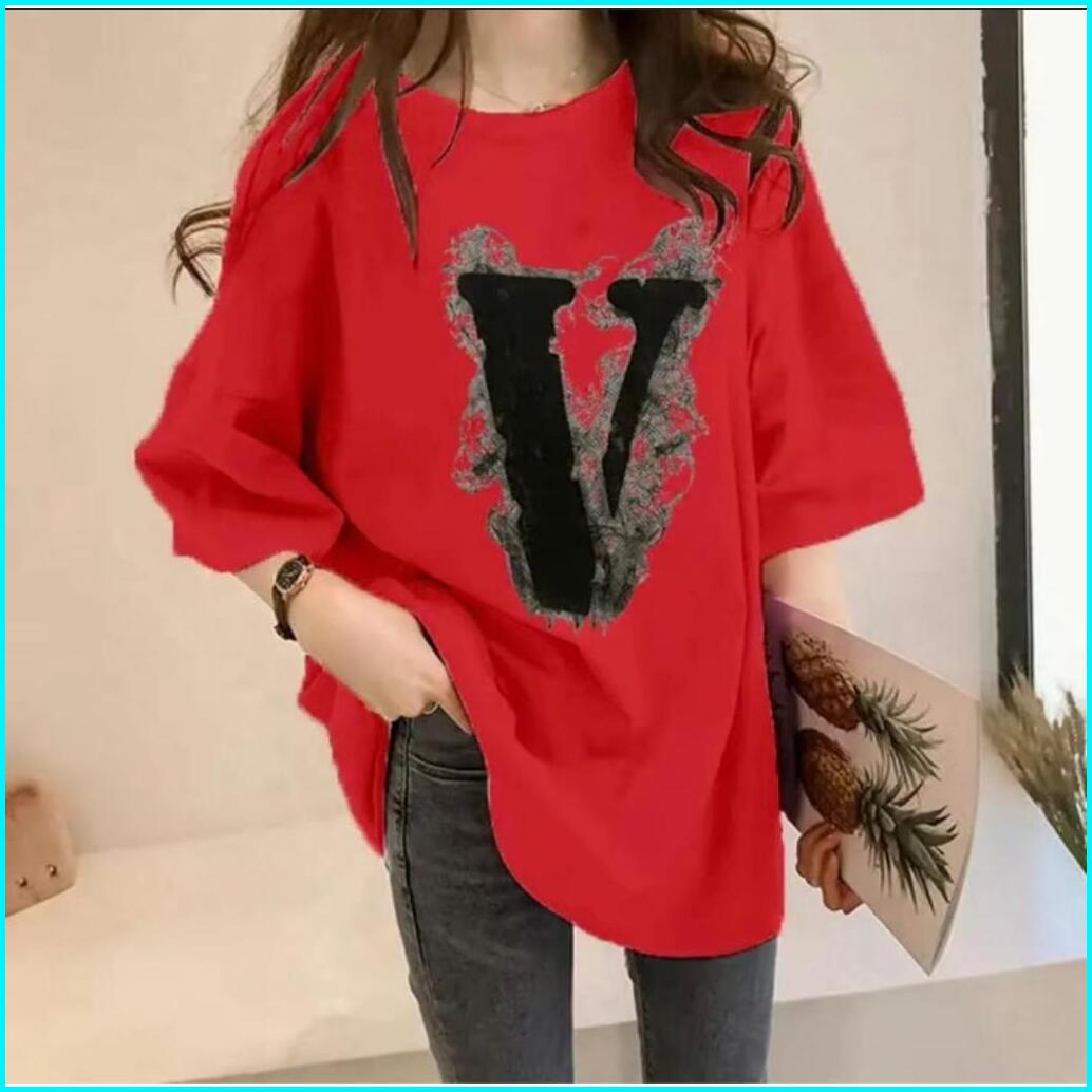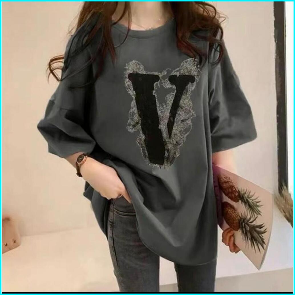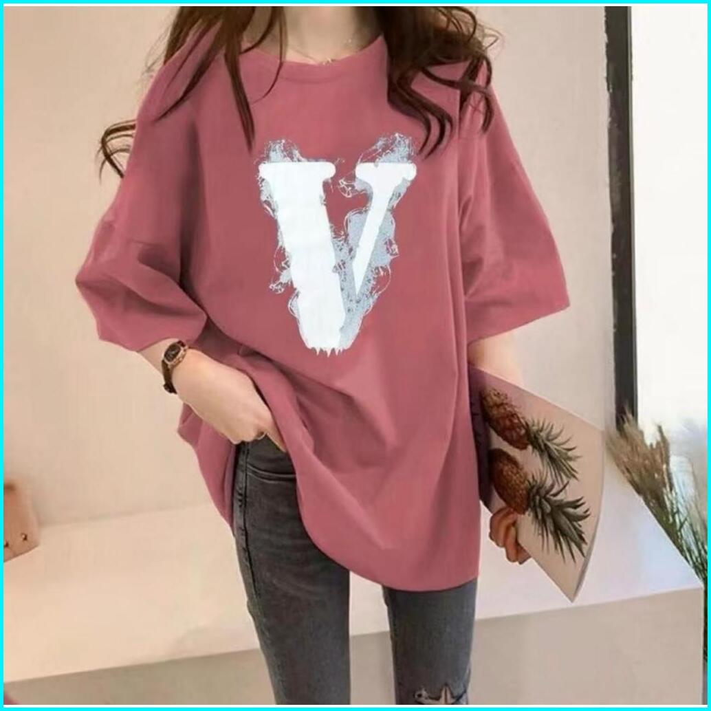 Kaos T-shirt Oversize Wanita - Kaos Distro Wanita - Kaos Streetwear Oversize - Baju Kaos Distro Motif V Besar