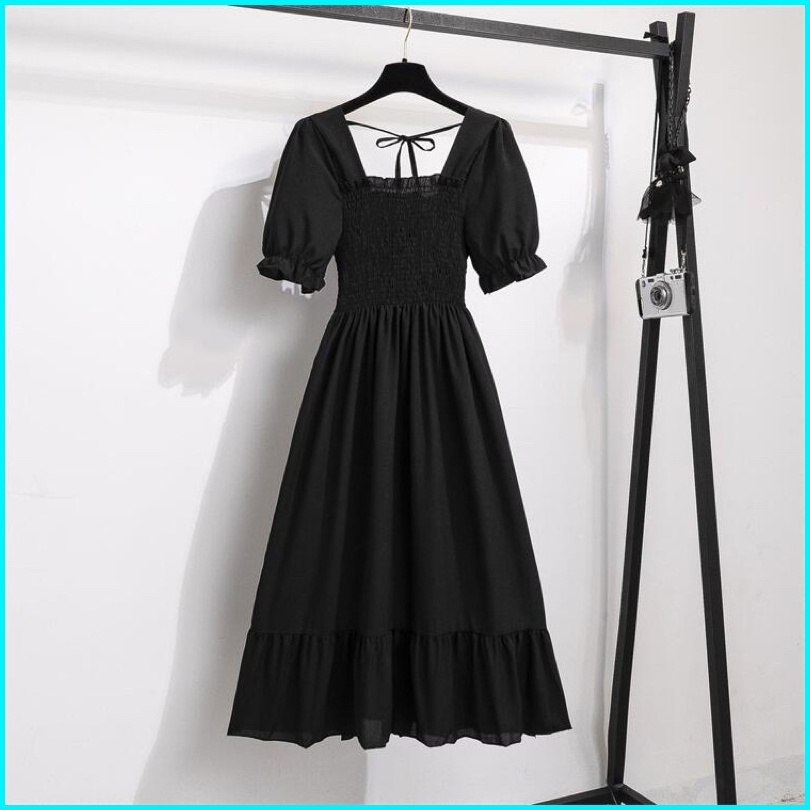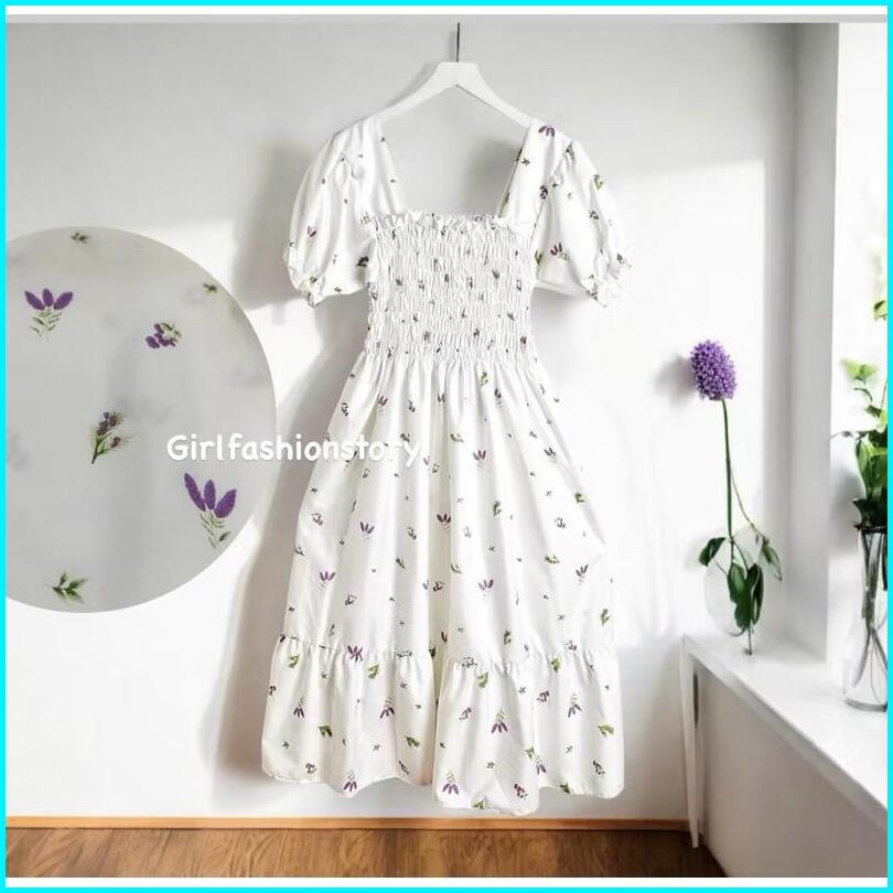 Smocked Dress Gaun Musim Panas Kasual Baru Lengan Pendek Smocked Dress Lipit Bunga Dengan Dasi Belakang