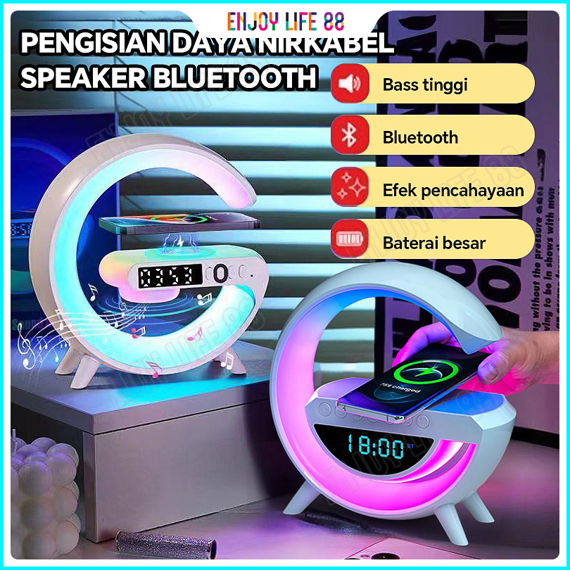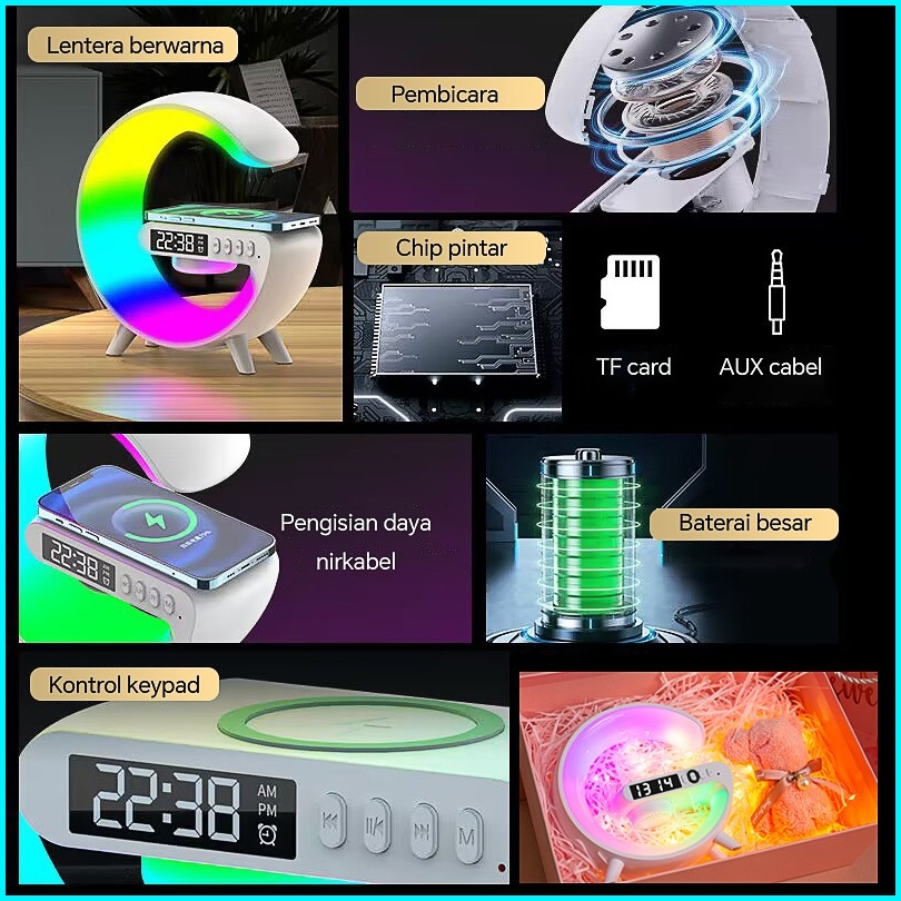 Garansi 1 Tahunbaru Lampu Speaker Bluetooth 15w Pengisian Nirkabel Tampilan Jam Led Bass Rgb Mini Music Box Bluetooth Sm