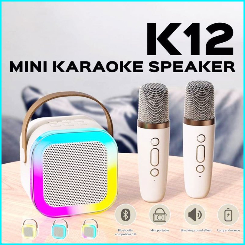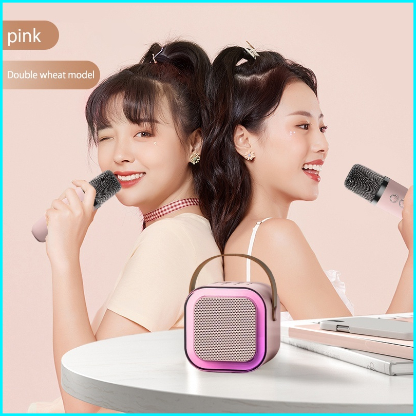 K12 2 Mic 1 Set Speaker Bluetooth Portable Speaker Karoke With Microphone 3d Stereo Amplifier Party Wireless Mini Speake