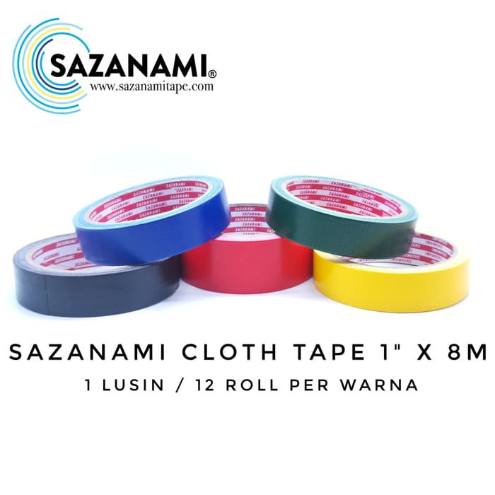 1 Lusin Lakban Kain hitam Warna 1" Inch x 10Y Sazanami Cloth Tape