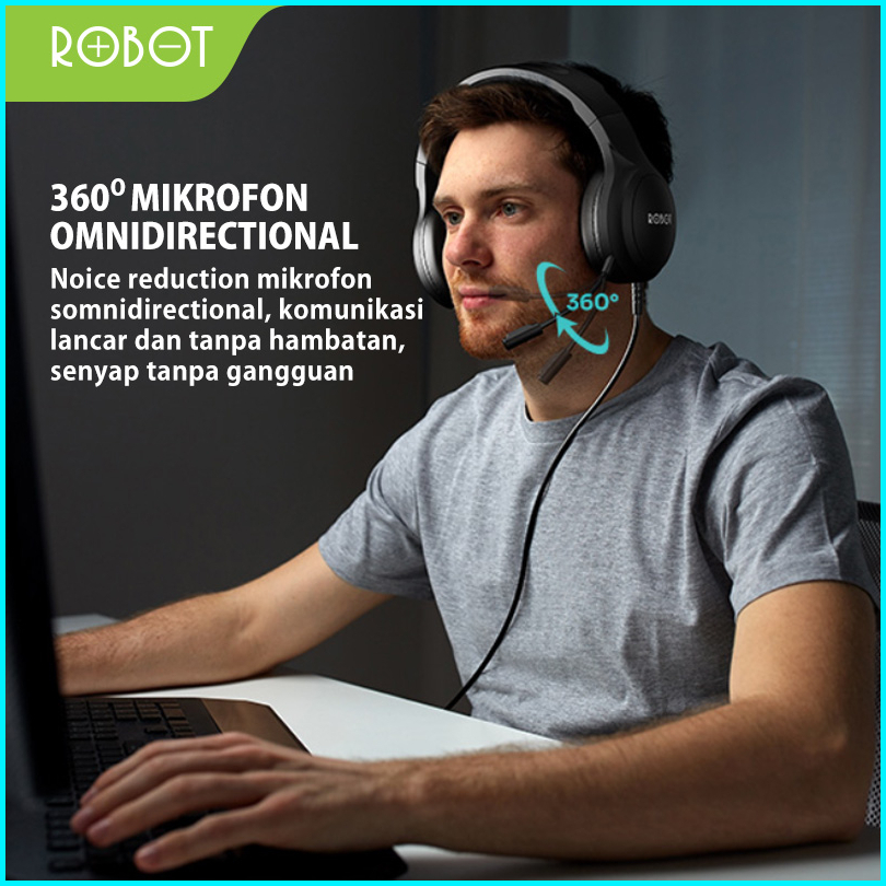 Robot Headphone Kabel Stylish Suara Super Bass Nyaman Ditelinga Headset Wired Rh-p20 3.5mm Jack Black Original Garansi 1