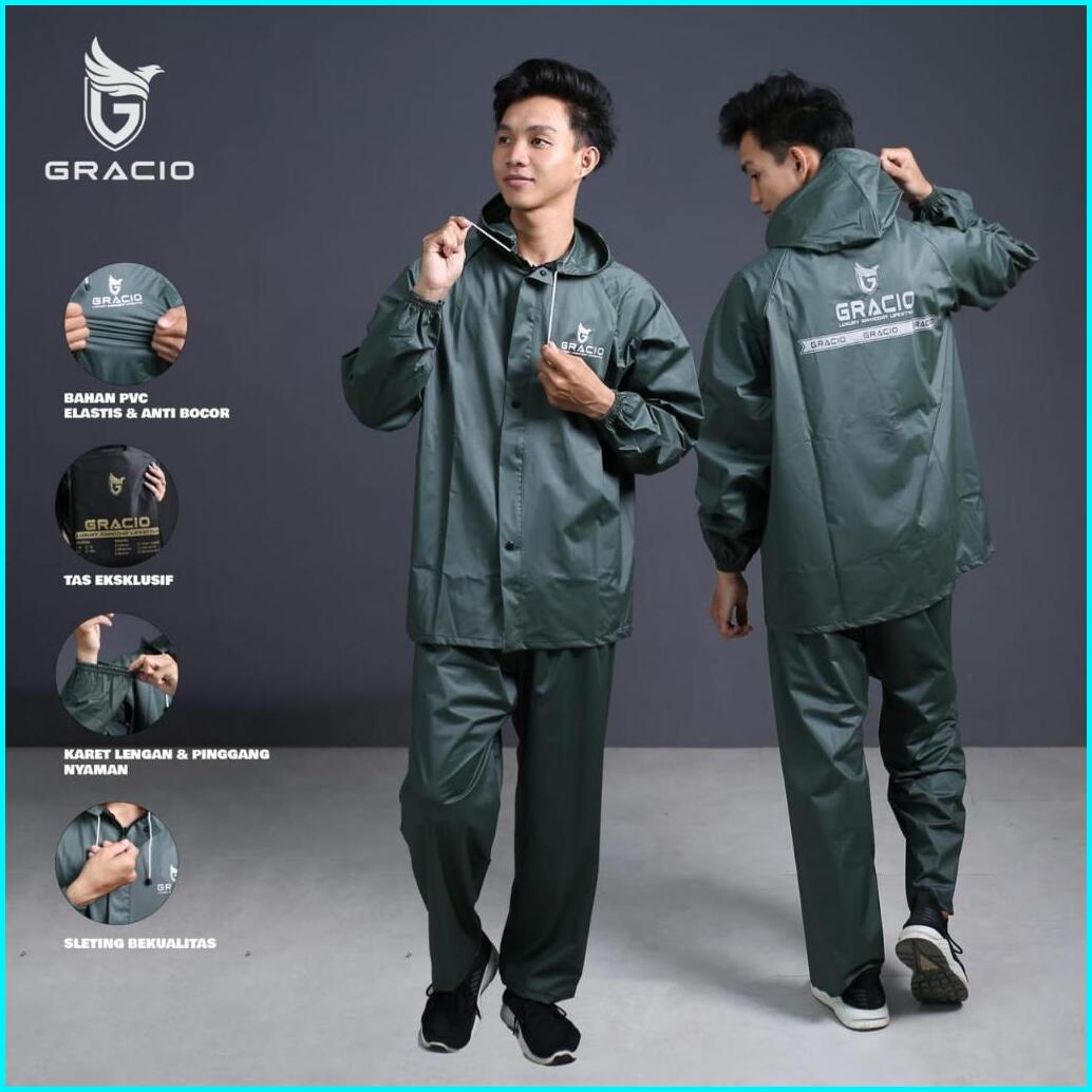 Raincoat Jas Hujan Dewasa Terbaik Pria Wanita By Gracio Mantel Hijau Army
