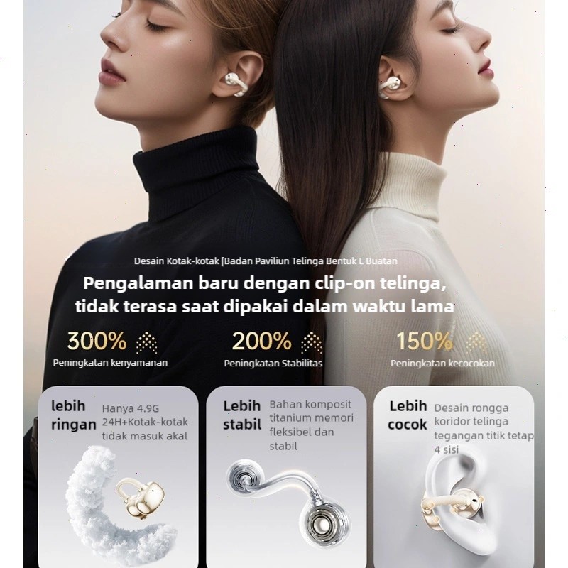 APEXGLOW Ear Clip Earphones Bluetooth ENC Peredam Kebisingan Suara HiFi Stereo Wireless Sport