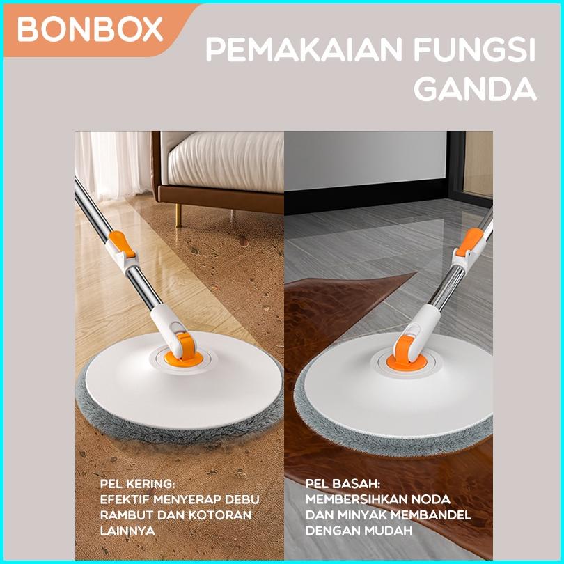 30k Bonbox Mop 2-in-1 Pel Lantai Bersih 360 Derajat Efisien Serat Pel Nano Tebal Pemakaian Fungsi Ganda Bm-001