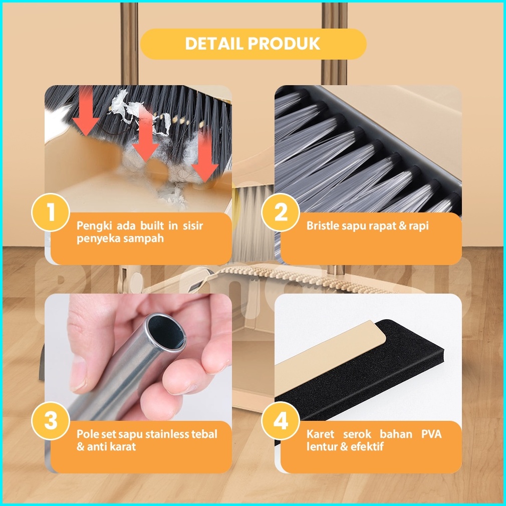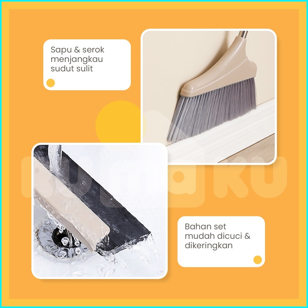 Rumaku Sapu Lantai 3 In 1 Broom Set Alat Pembersih Lantai Sapu Pengki Serokan Air