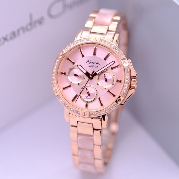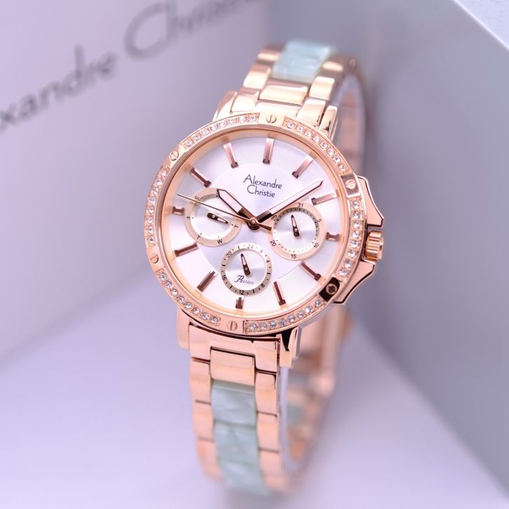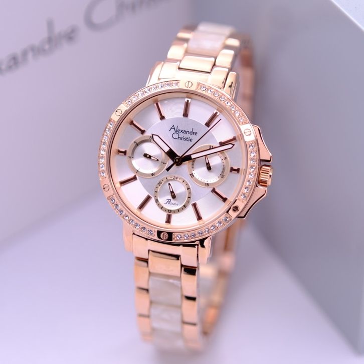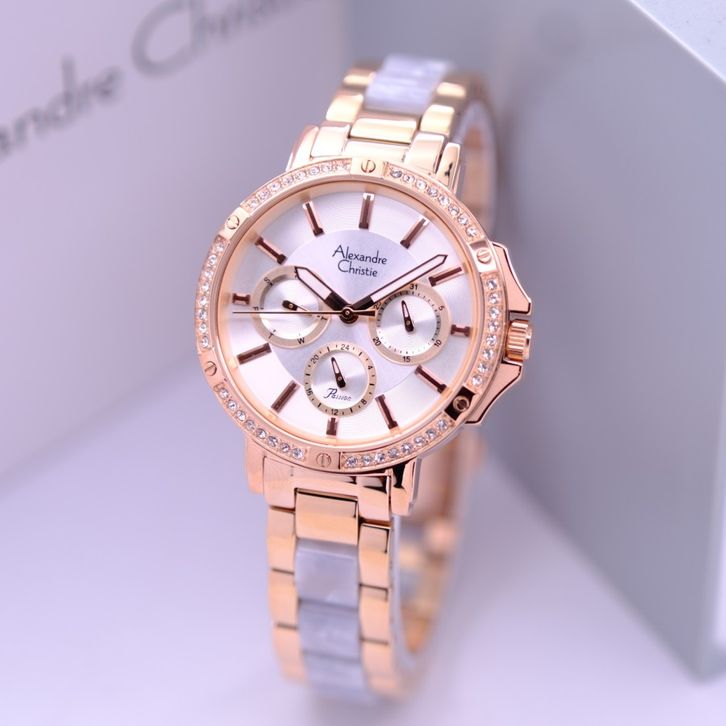 Jam Tangan Wanita Alexandre Christie AC 2B78 / AC2B78 / 2B78 Garansi Resmi 1 Tahun, Staainless Kombinasi Keramic