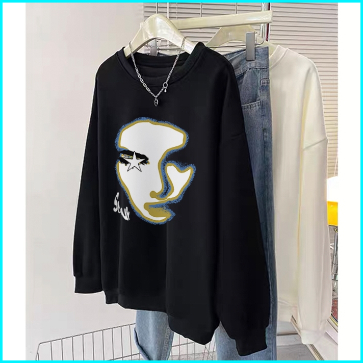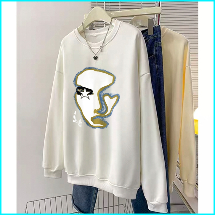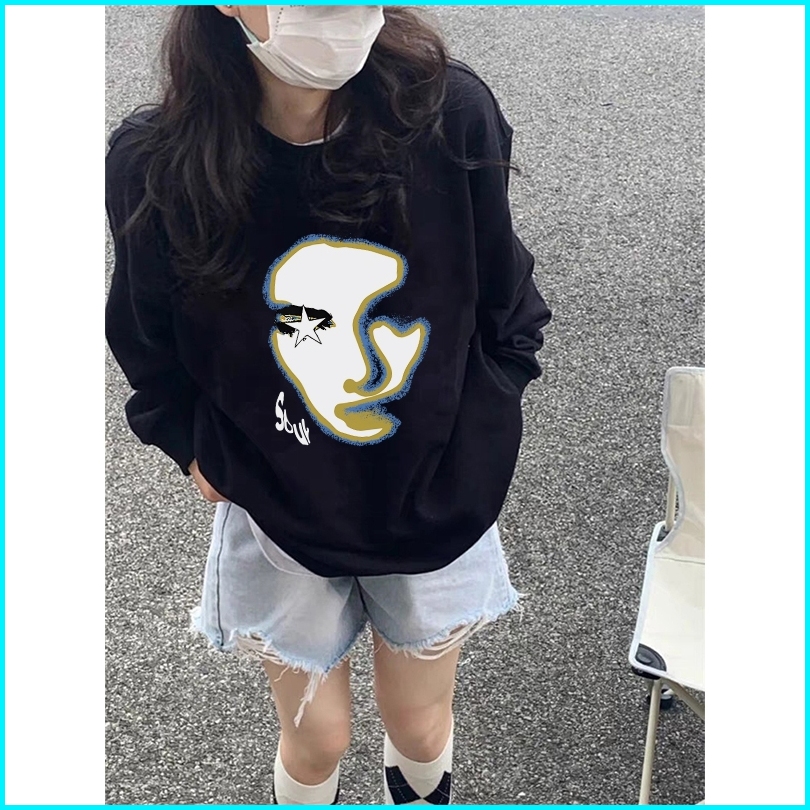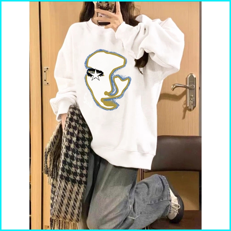 Forteid A1054 Sweater Lengan Panjang Wajah Potret Seni Retro Gaya Korea Sweater Pendek Pakaian Wanita Sweater Wanita Swe
