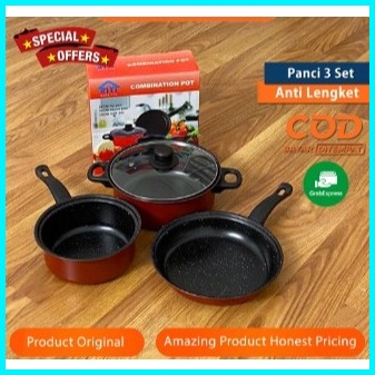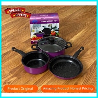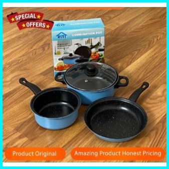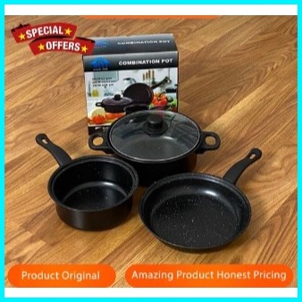 Panci Set 3 In 1 Untuk Memasak Anti Lengket Isi 3pcs Tutup Kaca Set Pot Cookware Set Masak Serbaguna