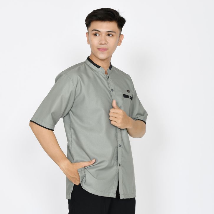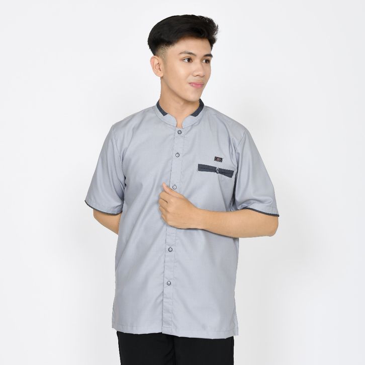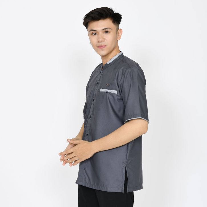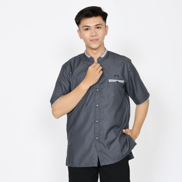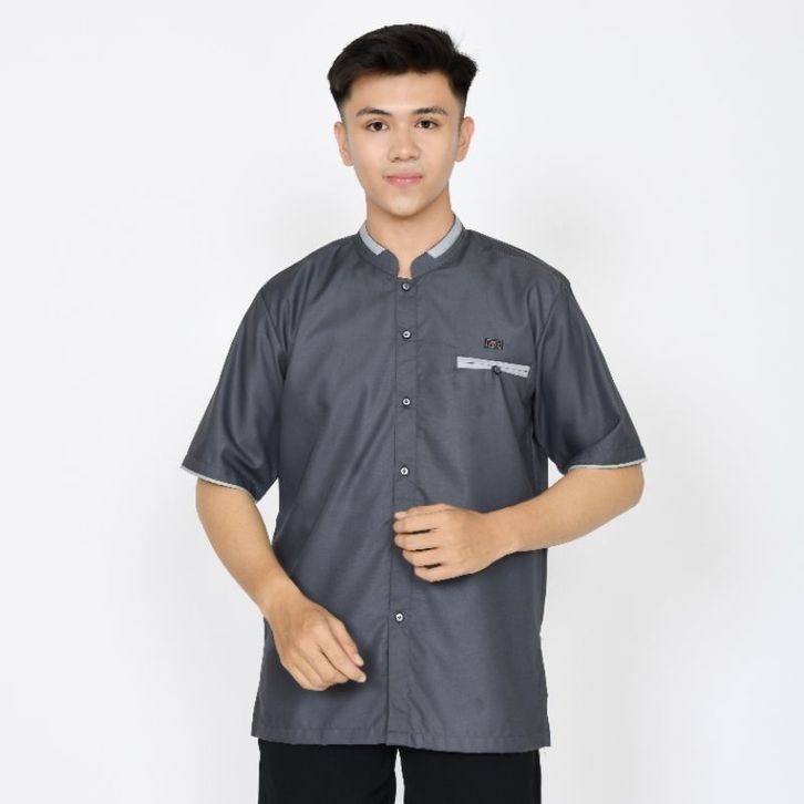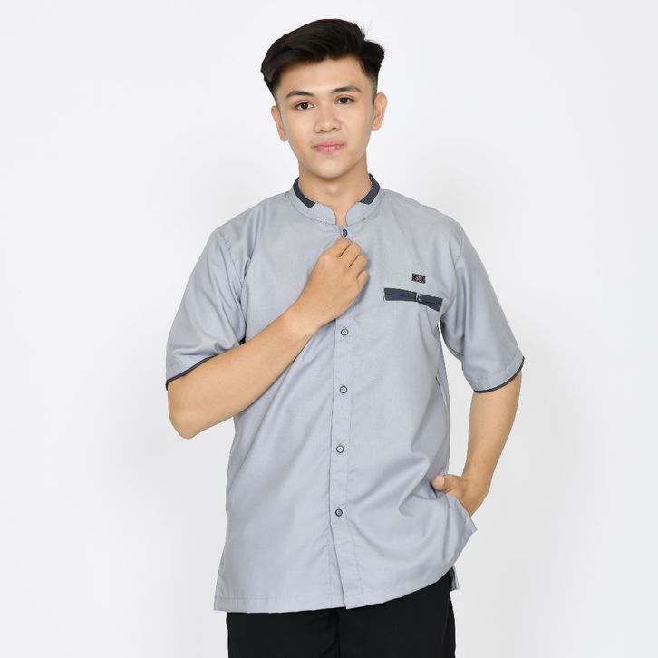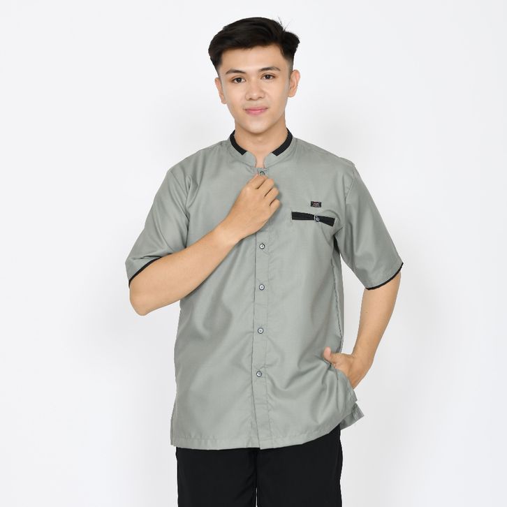 BAJ KOKO MUSLIM PRIA DEWASA LENGAN PENDEK ABU TUA ATASAN FASHION