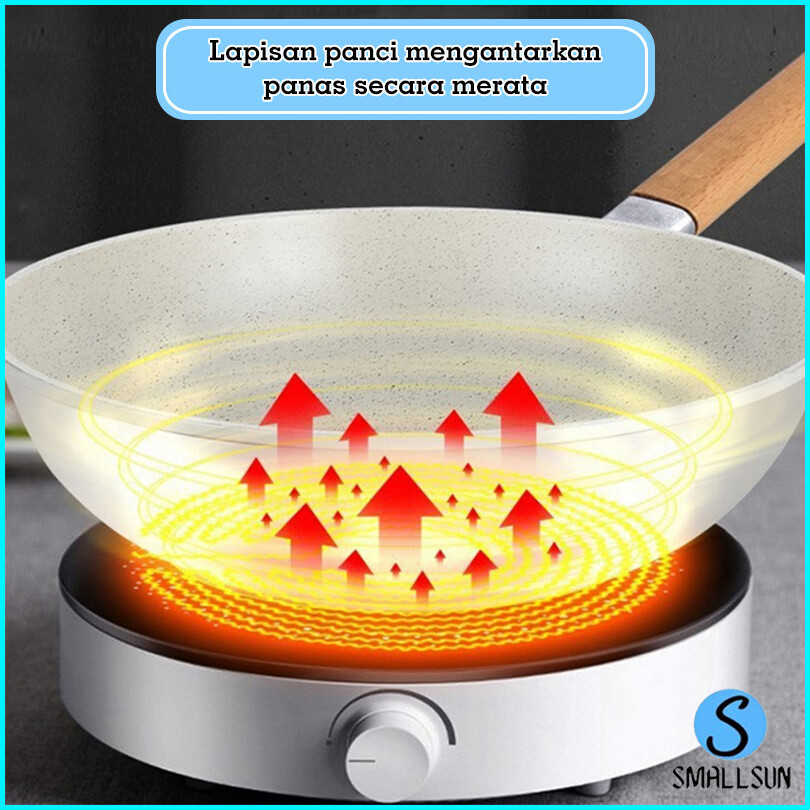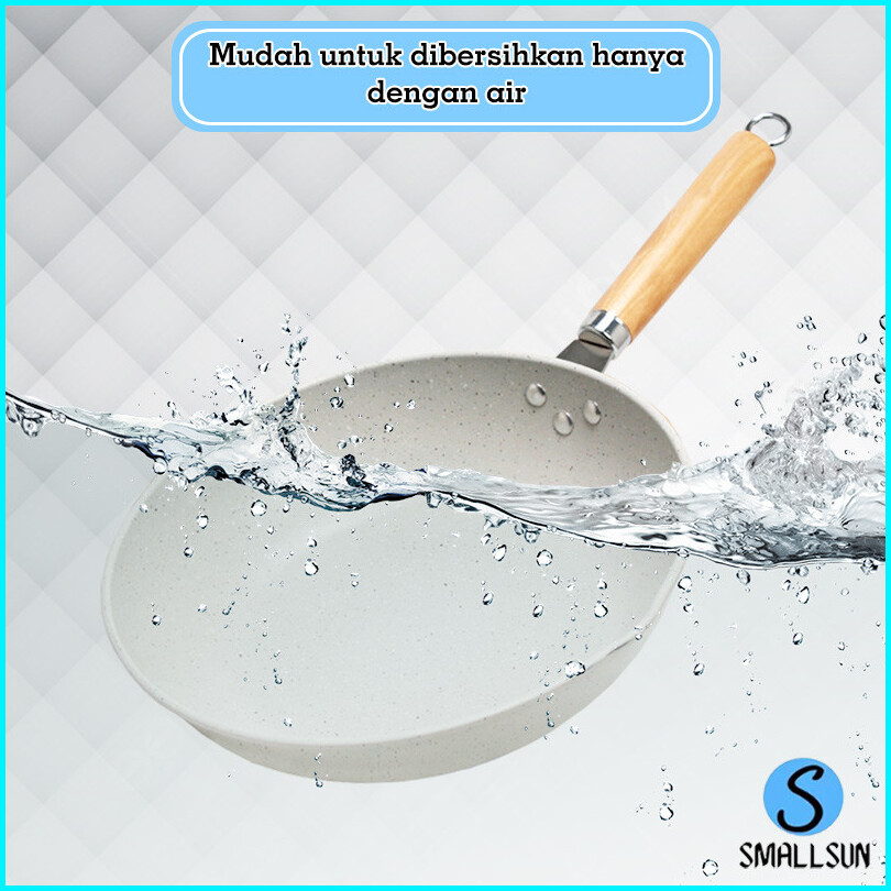 Ss Wajan Putih Penggorengan Gagang Kayu Anti Lengket 30cm Panci Frypan Penggorengan Serbaguna Premium
