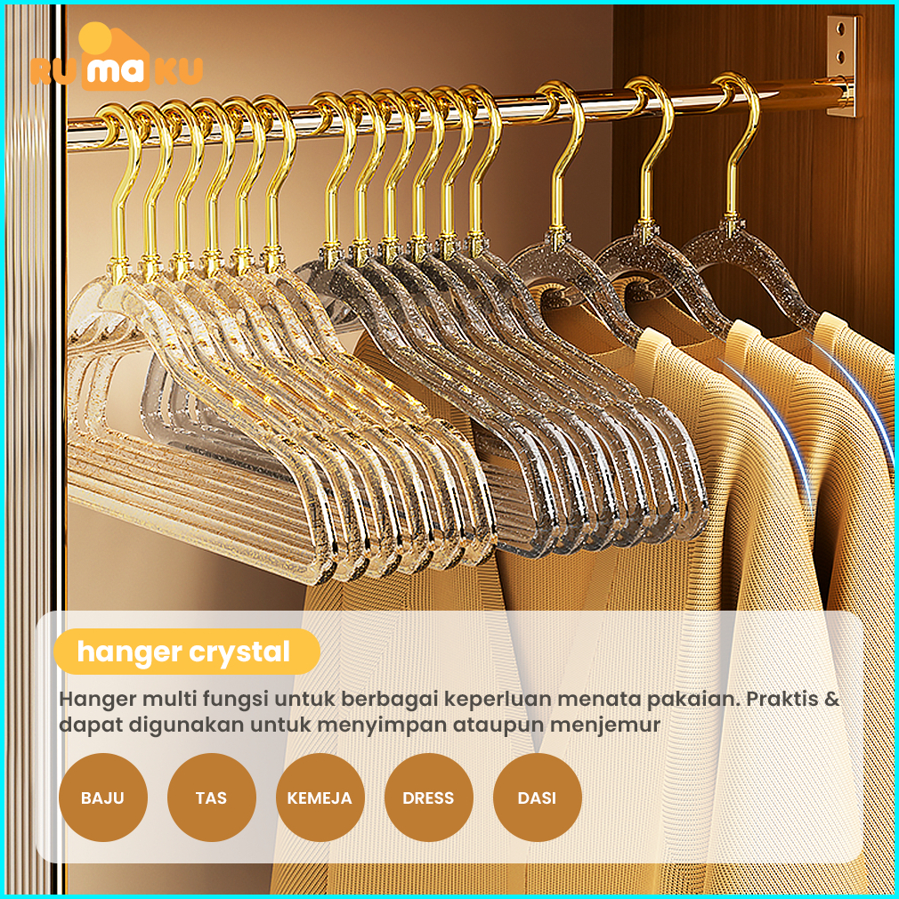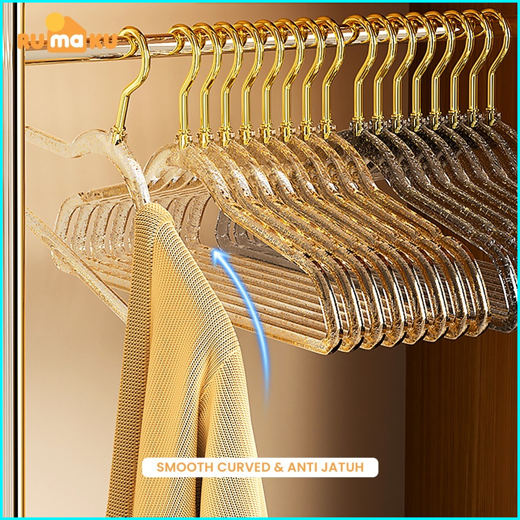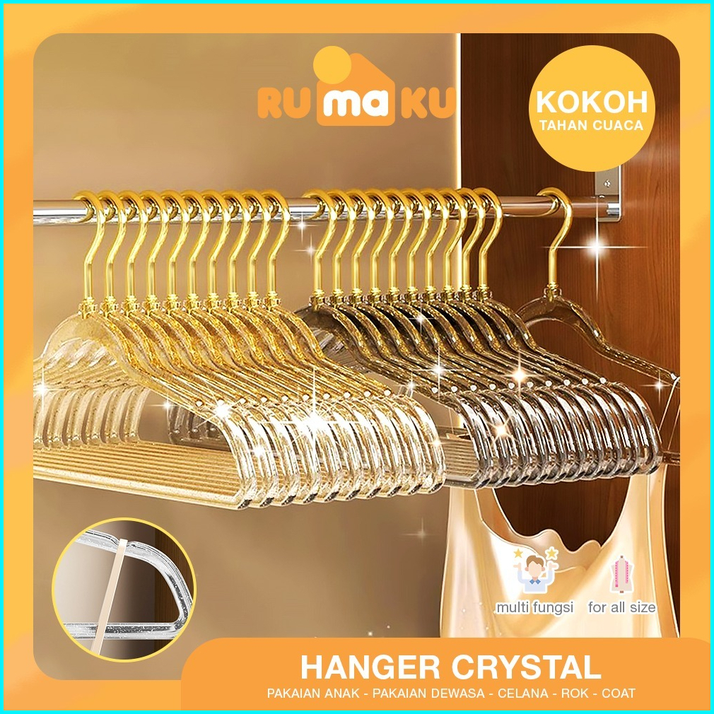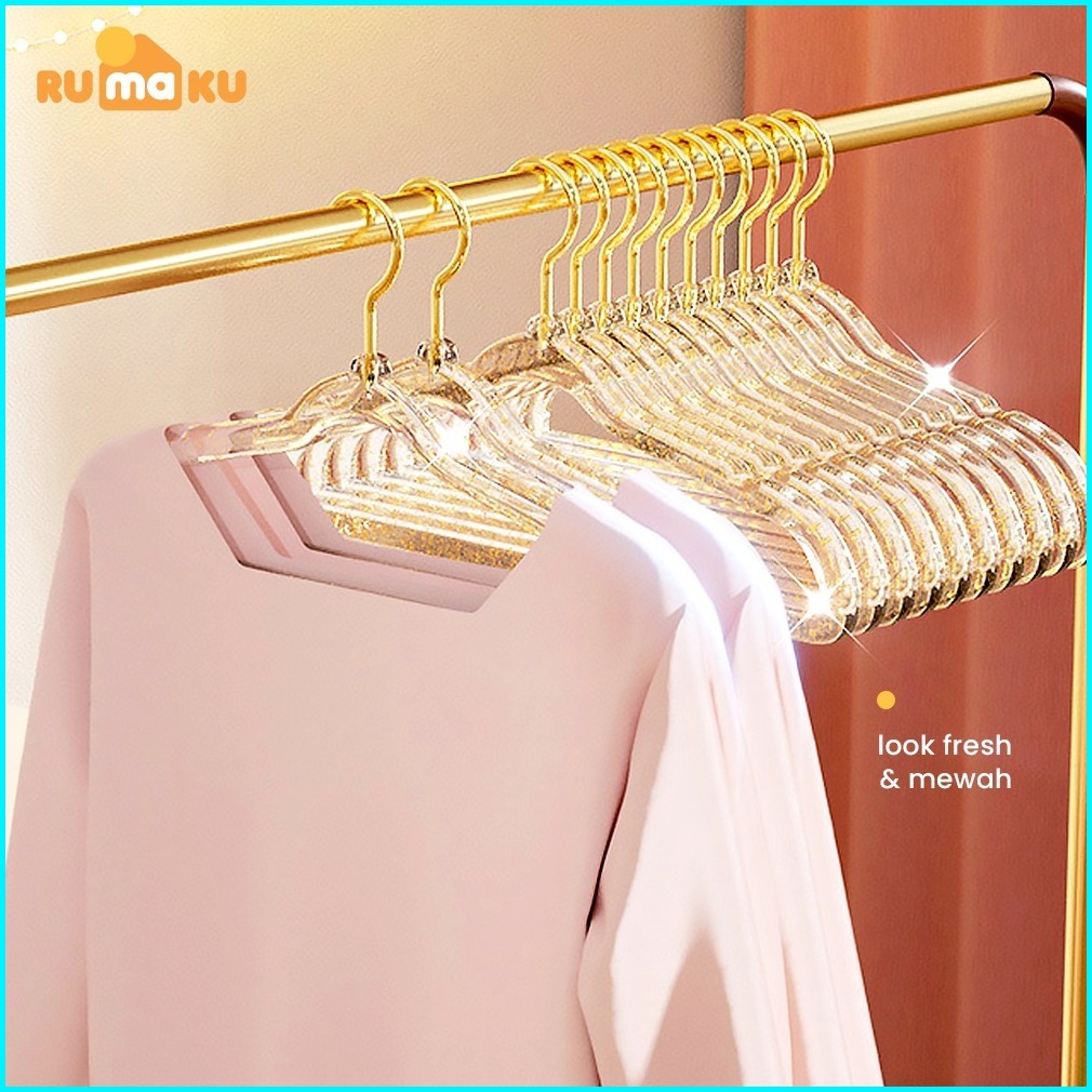 Rumaku Hanger Crystal Gantungan Baju Plastik Estetik Set Isi 10 Pcs