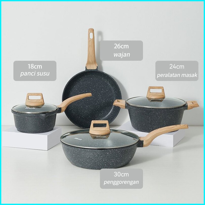 Granit Putih Antilengket Peralatan Masak Dapur Wajan Rumah Tangga Premium Set 4 Pcs Wajan Panci Jumbo Anti Lengket