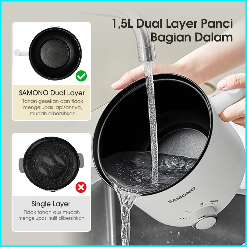 Samono Panci Listrik Merebus Memasak Mengukus Kukusan Stainless Steel Food Grade 1 5 Liter Sw-dg04s Low Watt 150 Watt An