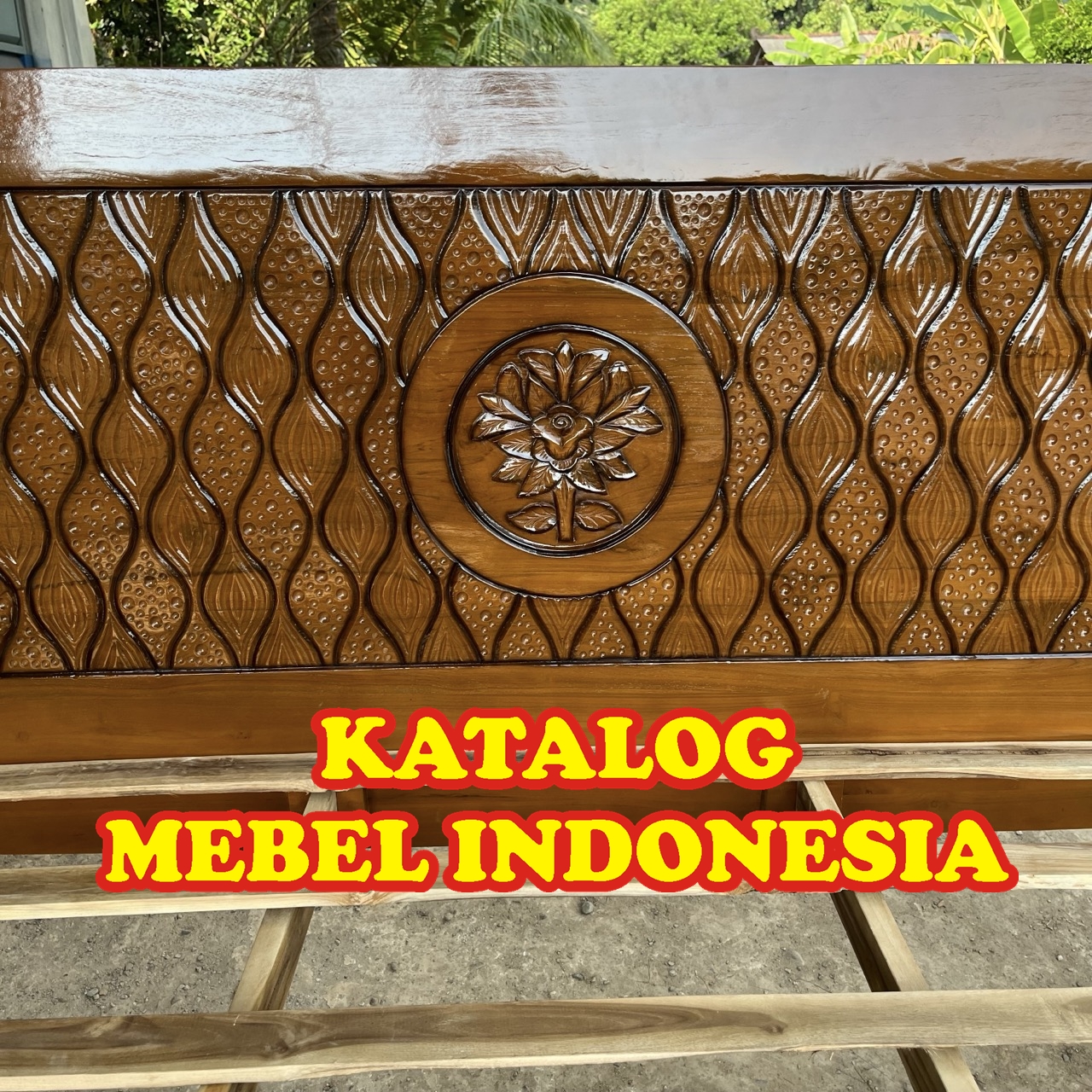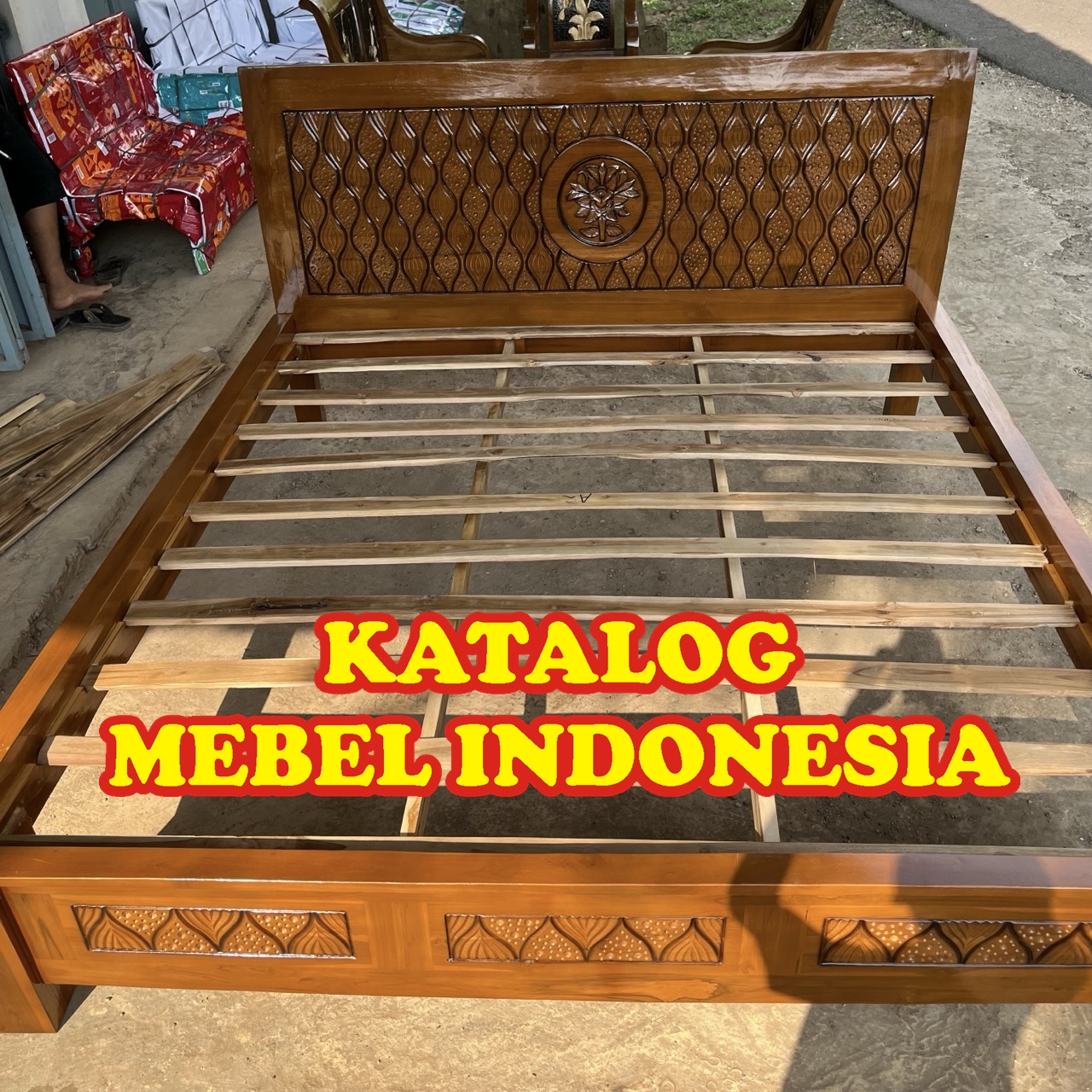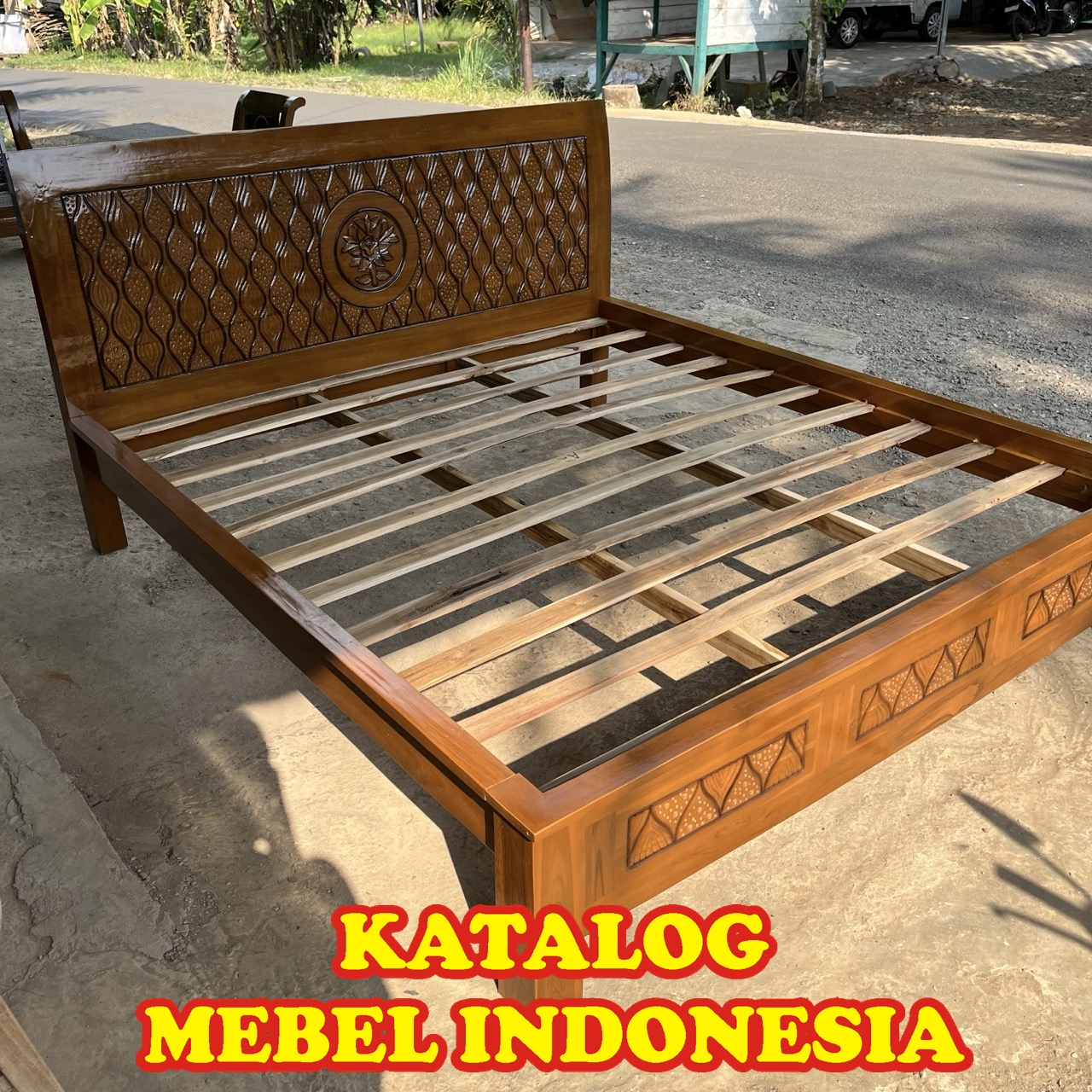 Dipan/ Ranjang / Rangka & Sandaran Tempat Tidur Minimalis Jati Ukir Bunga