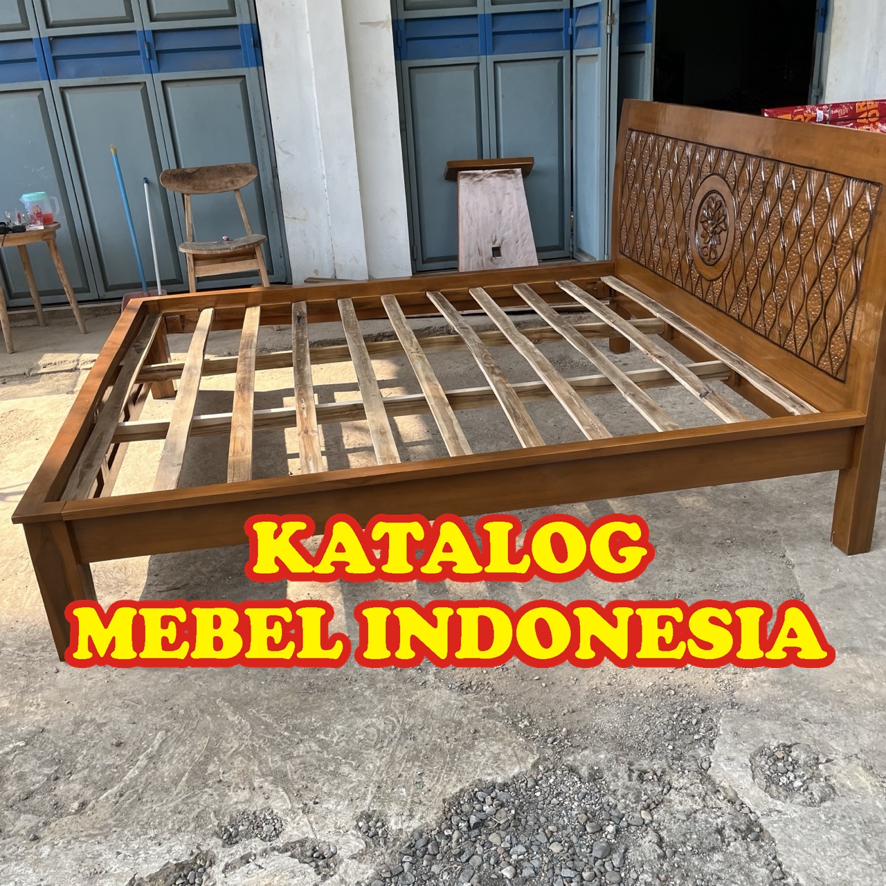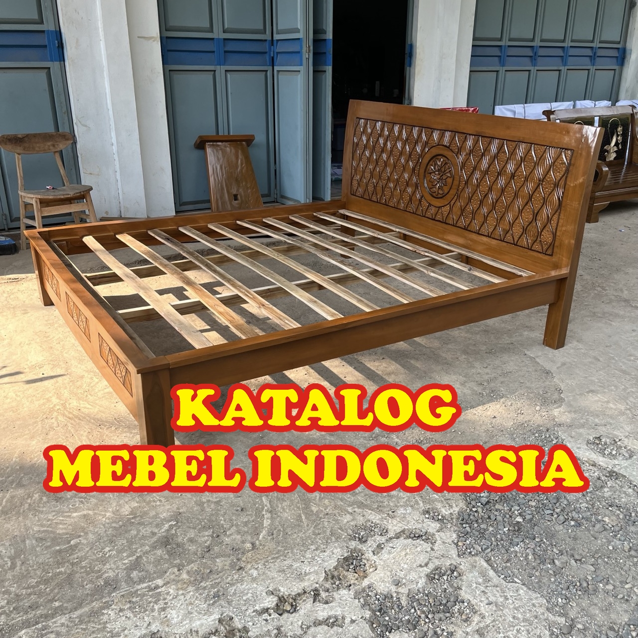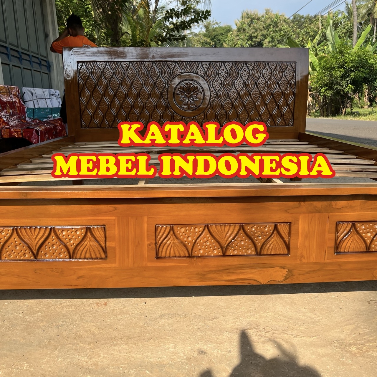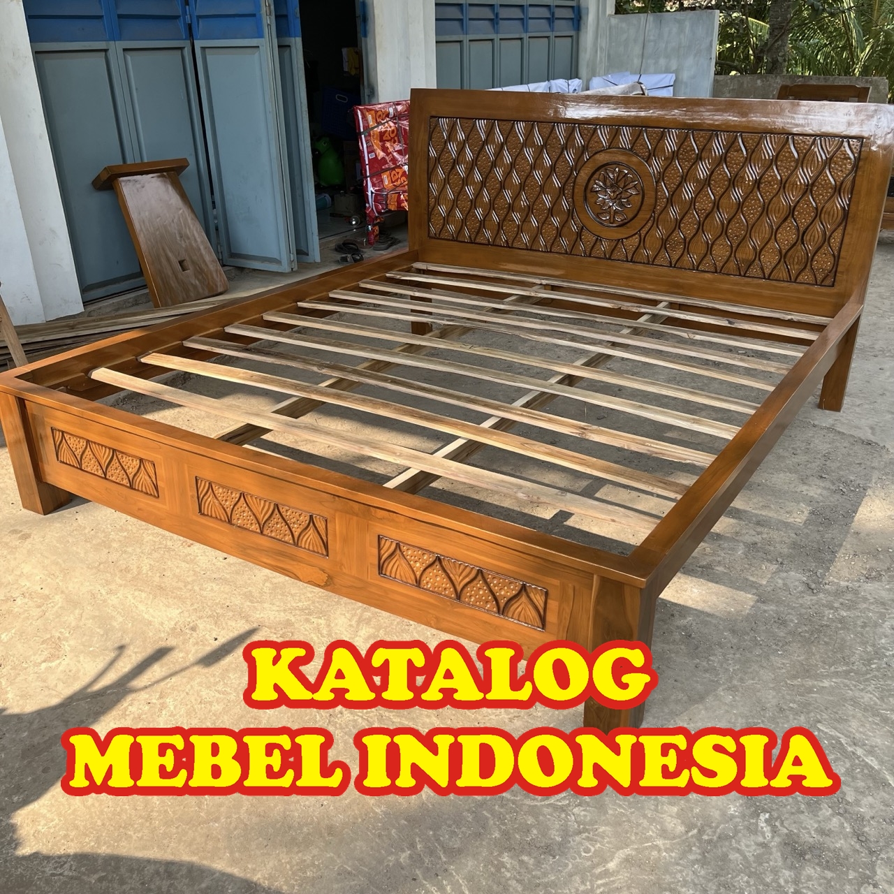Dipan/ Ranjang / Rangka & Sandaran Tempat Tidur Minimalis Jati Ukir Bunga