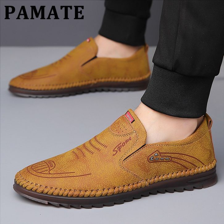 Sepatu Kulit Pria PAMATE Sepatu Kasual Slip On Pria Lembut Tahan Aus Ringan Nyaman Dan Fleksibel Sepatu Kasual Ala Kore