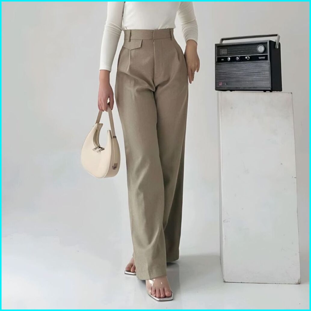 Oro Pants Loose Pants Trousers Highwaist - Celana Kulot Anti Kusut Bahan Jatuh - Celana Kasual Formal