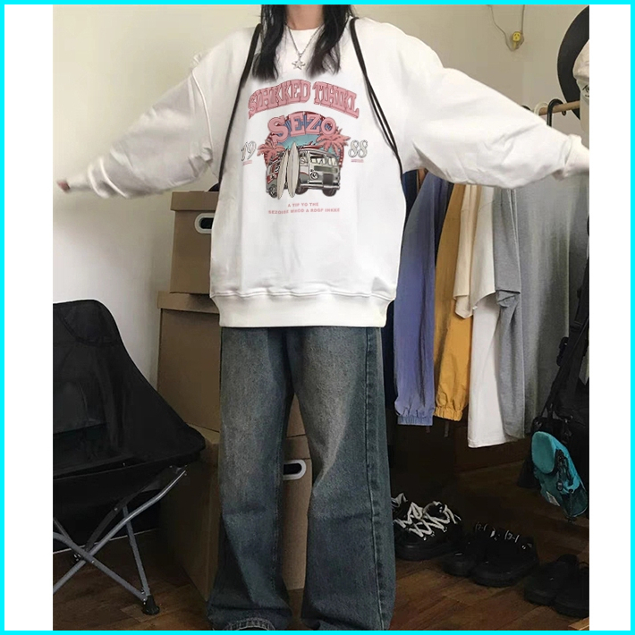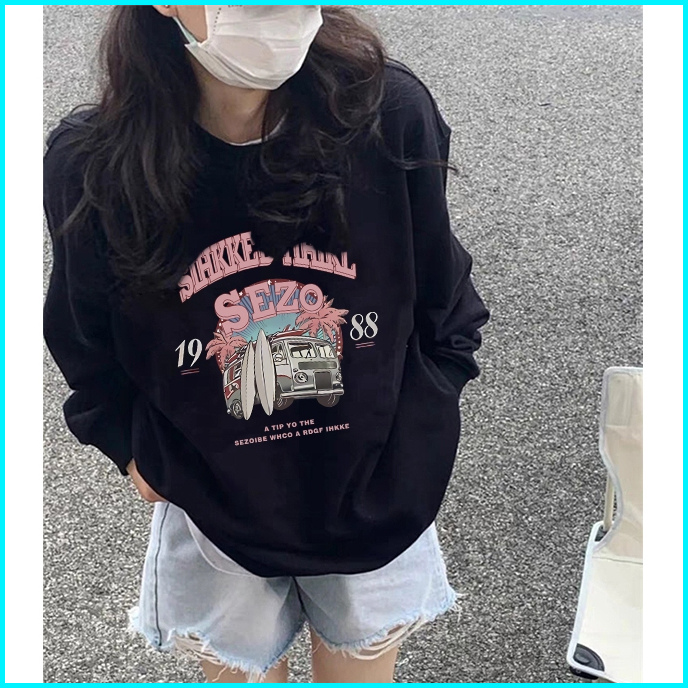Gb05 A0523 A0298 Forteid Sweater Oversize Car Sweater Hitam Panjang Muda Crewneck Basic Korean Style Sweater Oversize Cr