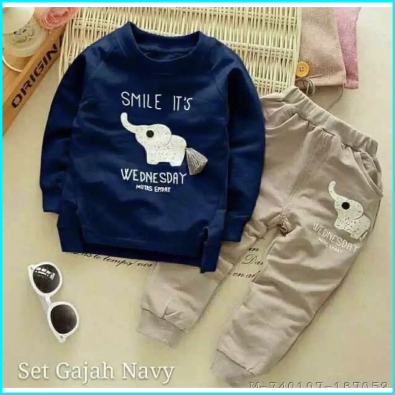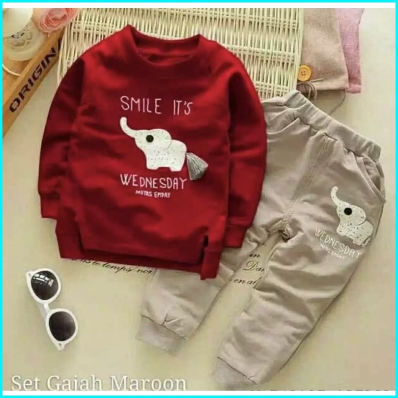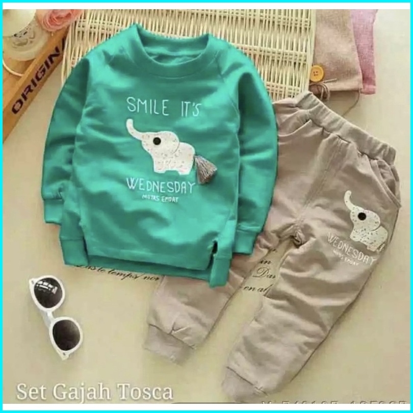 Setelan Sweater Gajah Pilih Warna 1-5 Tahun