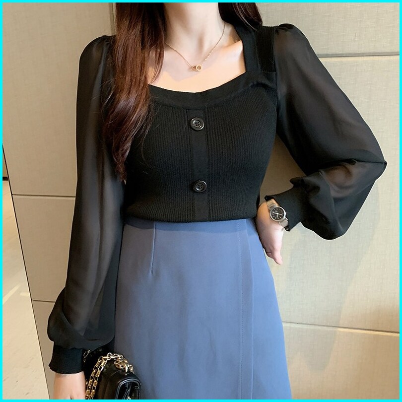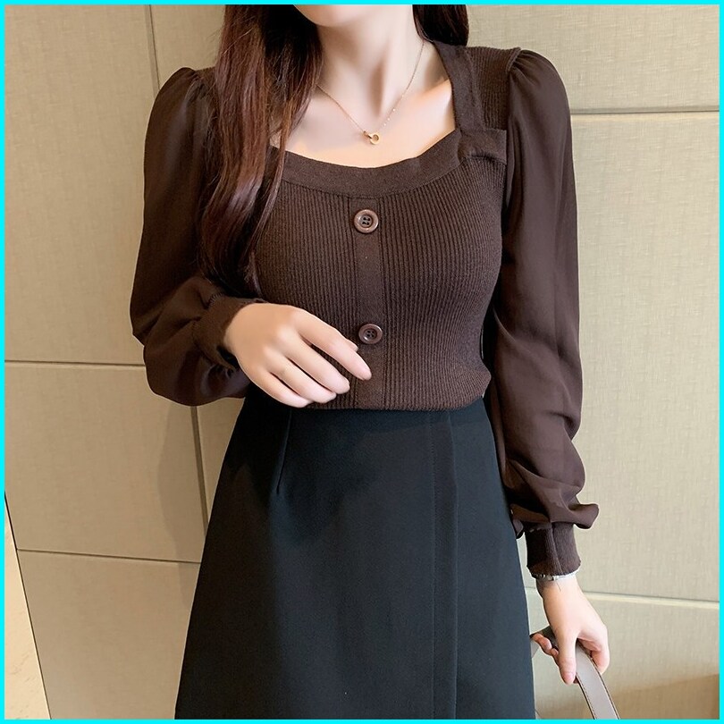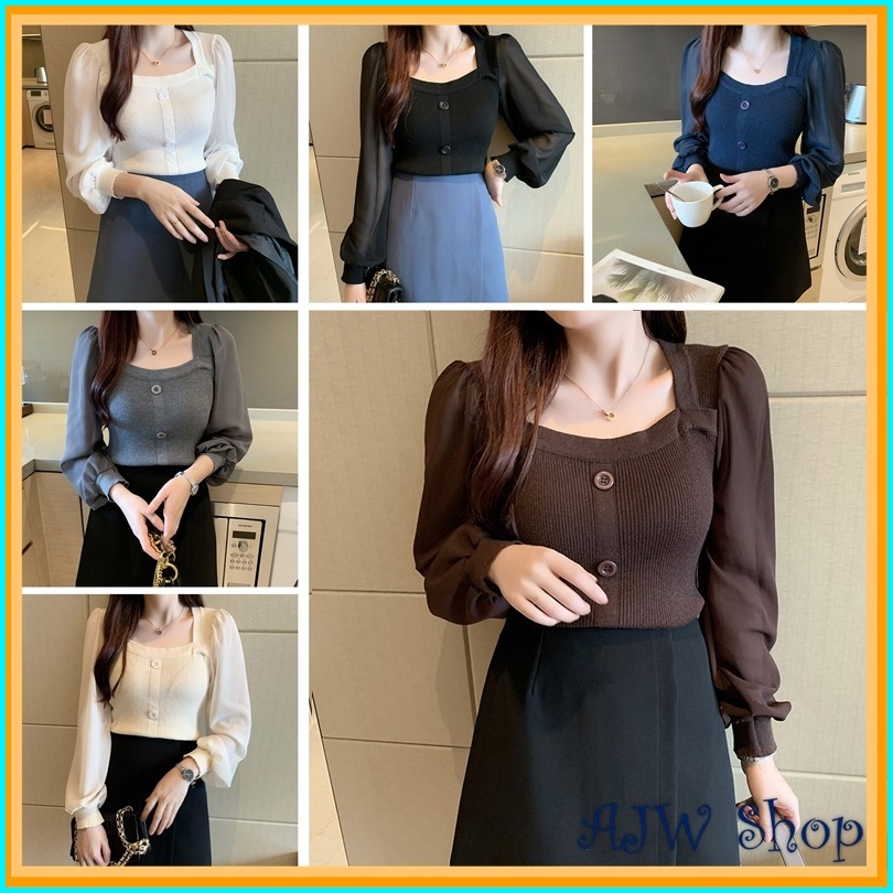 Ajw Blouse Wanita Kekinian Korean Style Rajut Lengan Panjang Import Premium Zy Xac Atasan Blouse Rajut Wanita Korea Impo