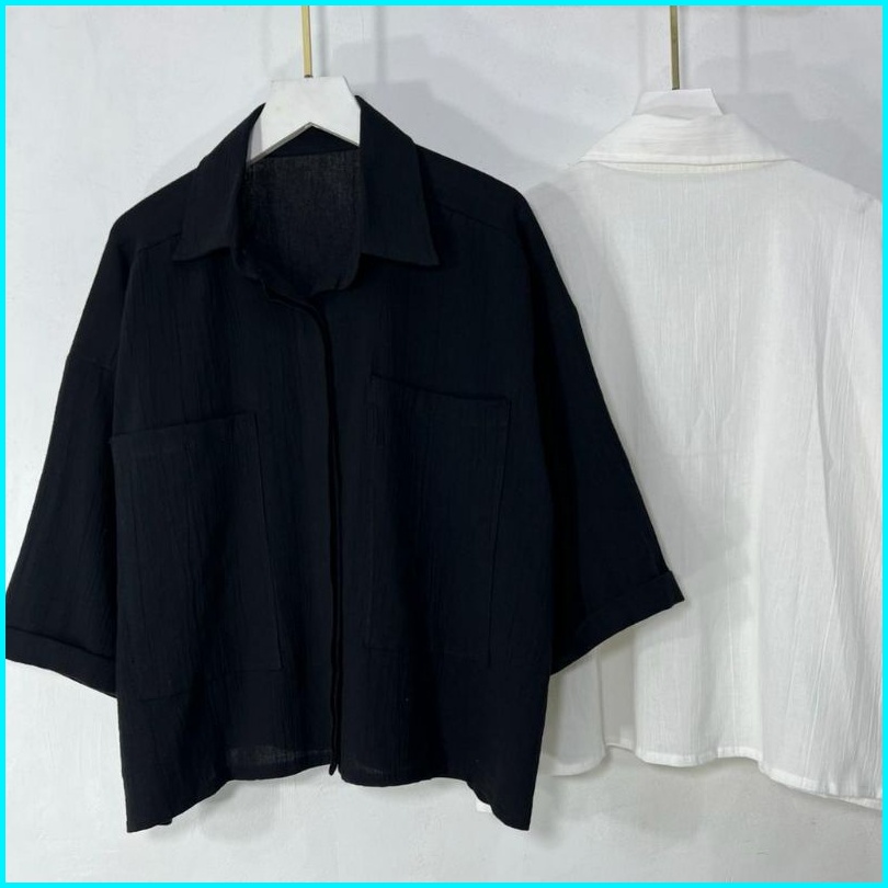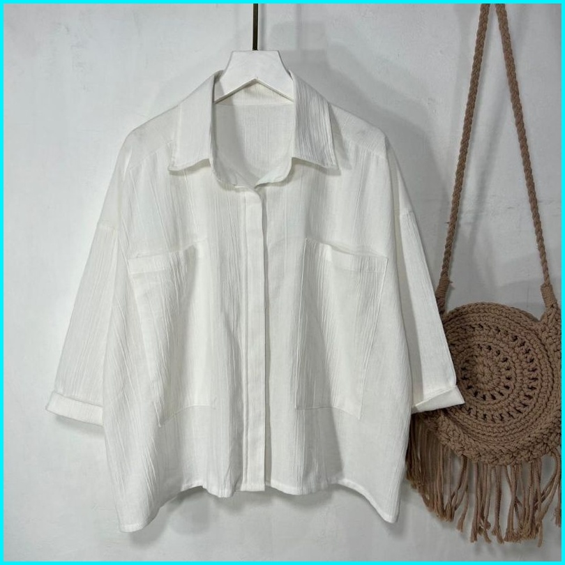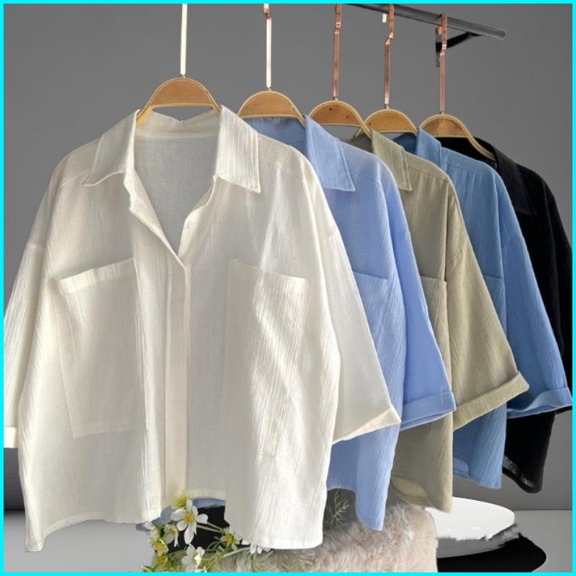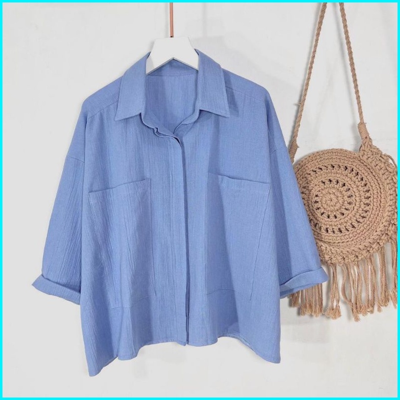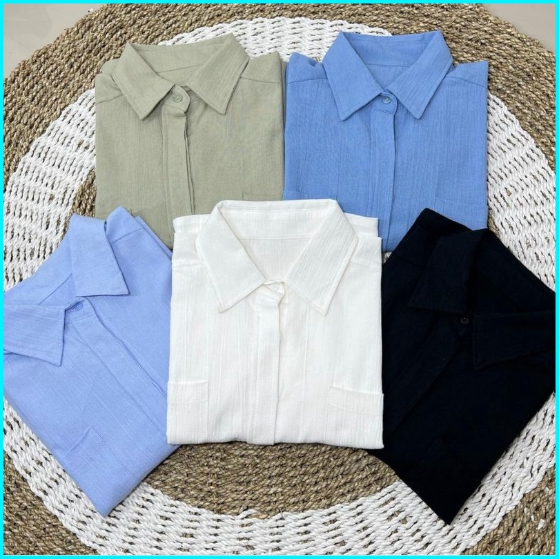 Kemeja Linen Wanita Atasan Wanita Korean Style Kemeja Kantong Terbaru