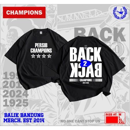 Kaos Persib Back2Back Juara 2024–2025 | Bahan 30s | T-Shirt Resmi Bobotoh M–XXL