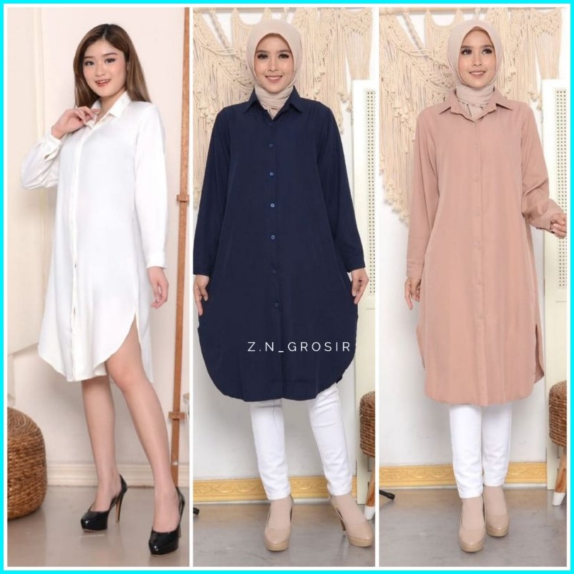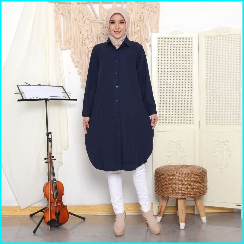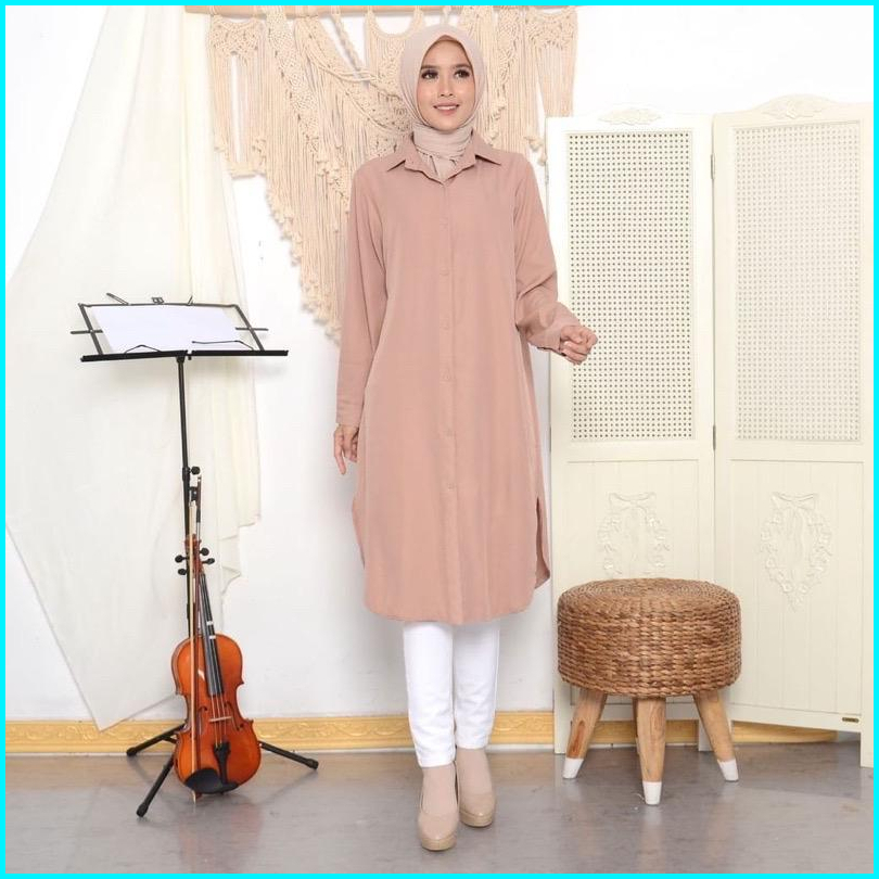 Kemeja Tunik Wanita Polos Bahan Shakila Twill Premium Long Tunik Wanita Muslim Tunik Panjang Basic Wanita Ld 120 Ukuran