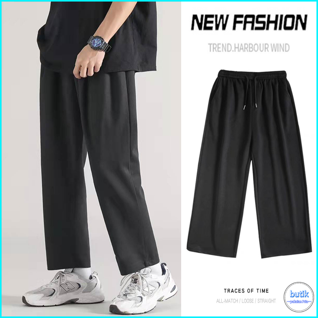 Loose Pants Celana Panjang Pria Fashion Korea Celana Kasual Pria Celana Hitam Sweatpants Pria Straight Pants Pinggang El