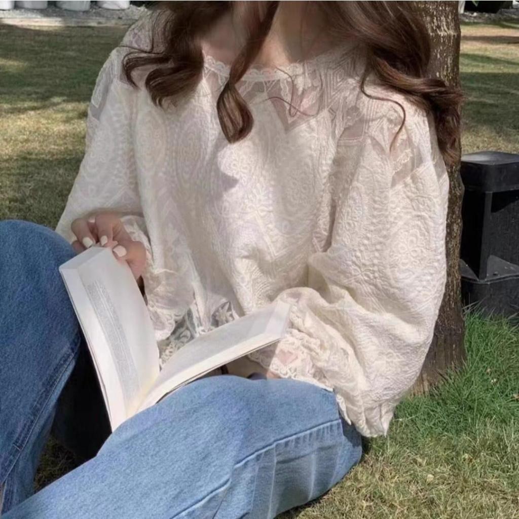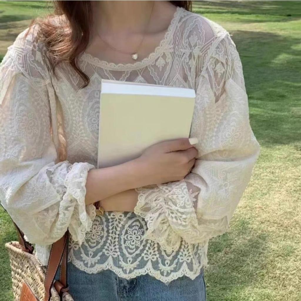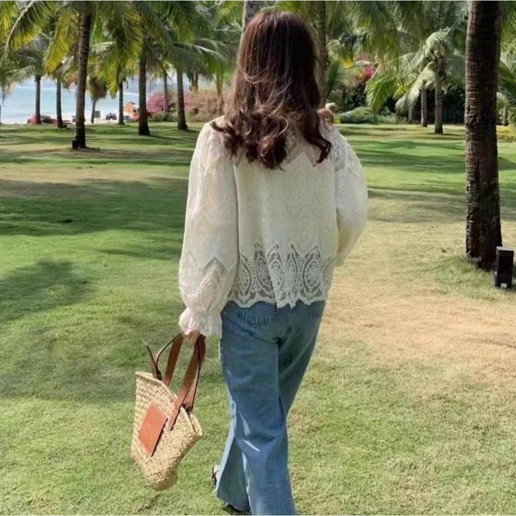 Shemira Embroidered Lace Top Blouse Lace Cewe Lengan Panjang Import 2905