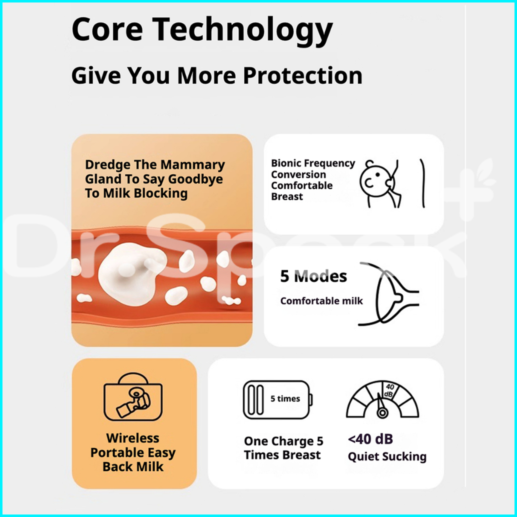 Dr.spock Pompa Asi Elektrik Wireless Pompa Asi Electric 180ml Portable Pomping Asi Elektrik Bayi Aman Tanpa Rasa Sakit P