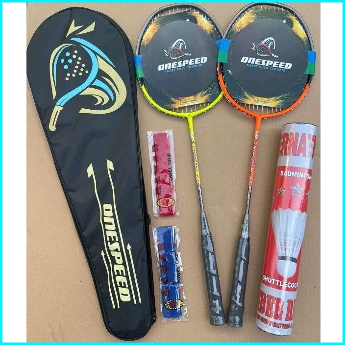 Raket Bulutangkis Original Onespeed Paket Lengkap Raket Tas Grip Shuttlecock