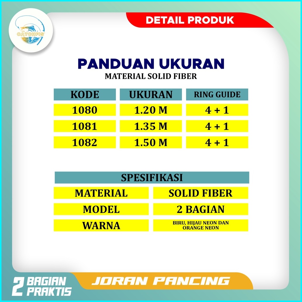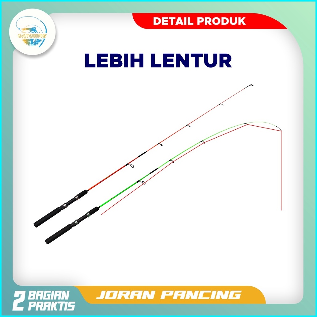 Catchfis - Joran Pancing Super Lentur Warna Hijau Dan Merah Panjang 120cm - 150cm Bahan Fiber Solid Cocok Untuk Mancing