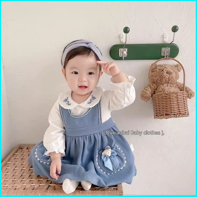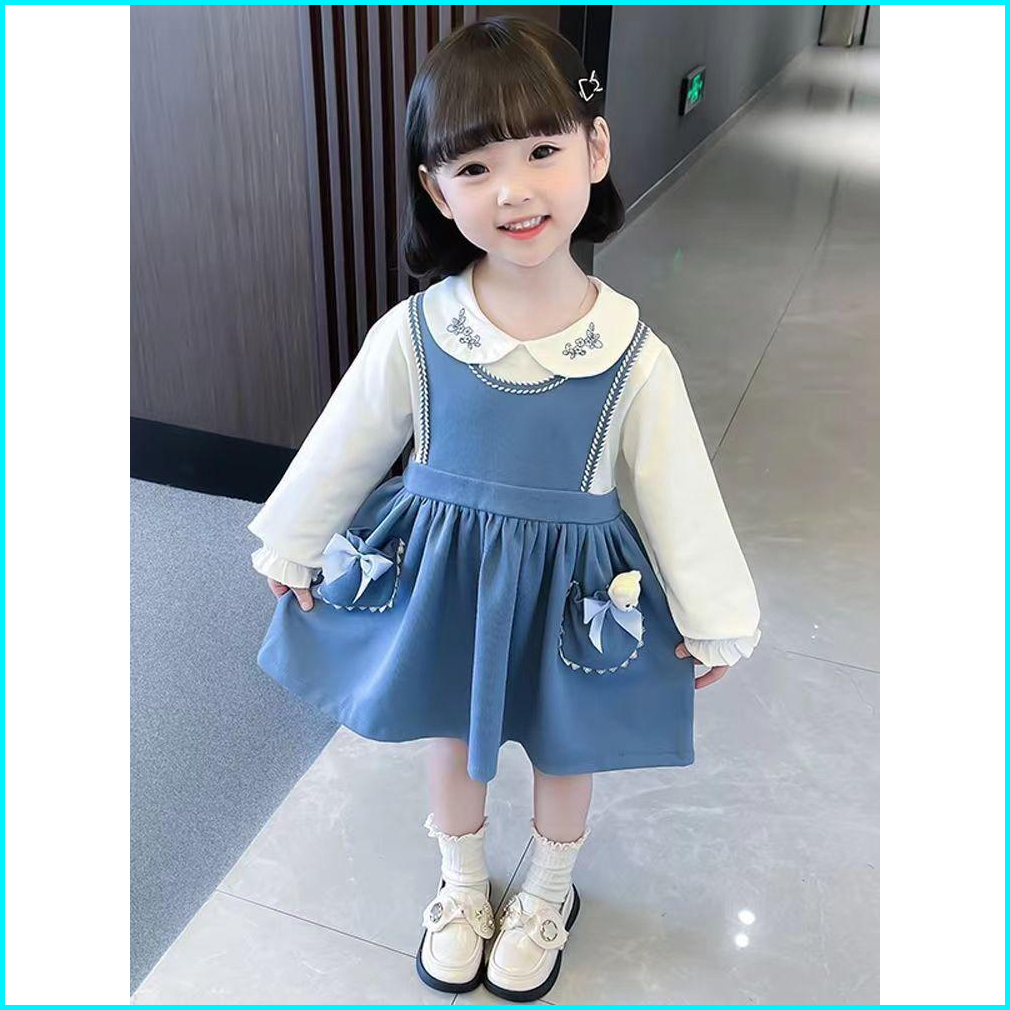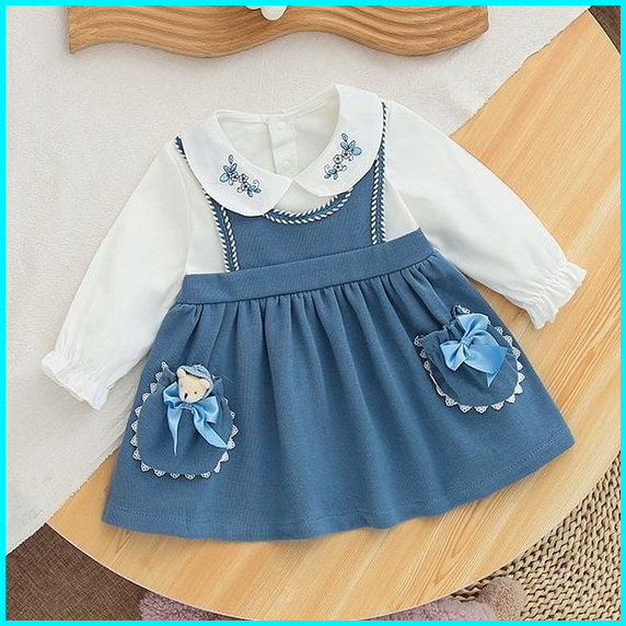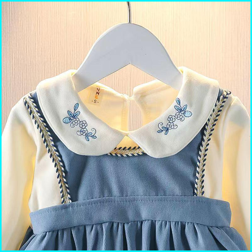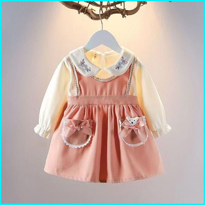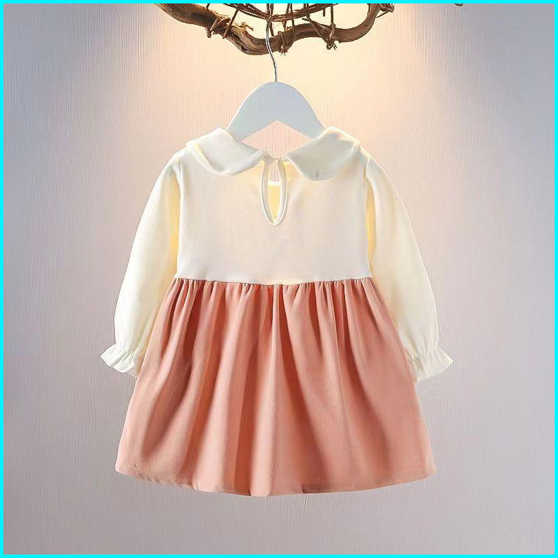 Twinkle Baju Dress Anak Perempuan Lengan Panjang Bahan Katun Polos Motif Bordir Usia 1-4 Tahun