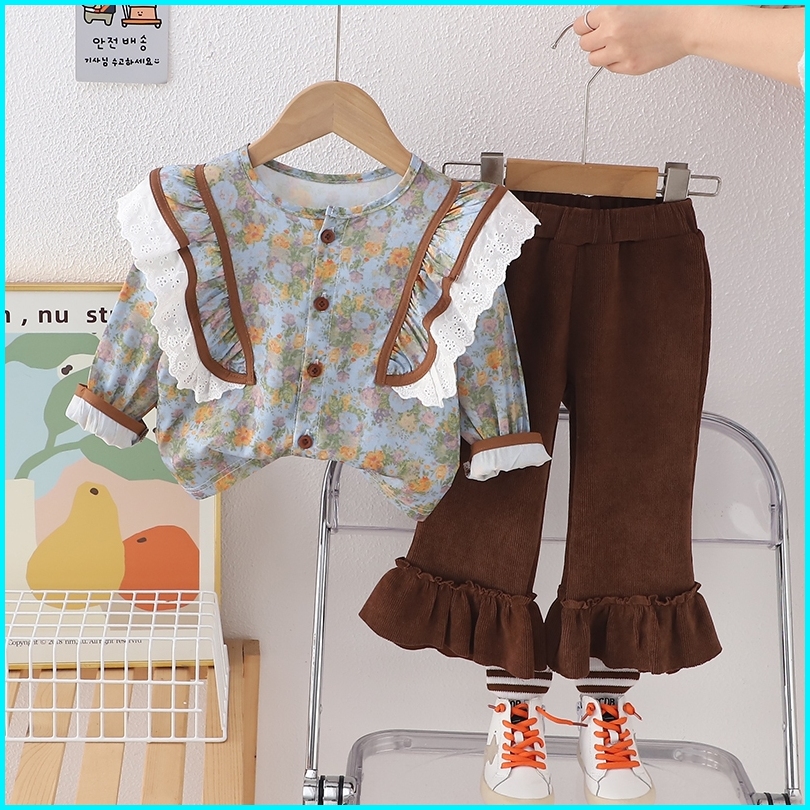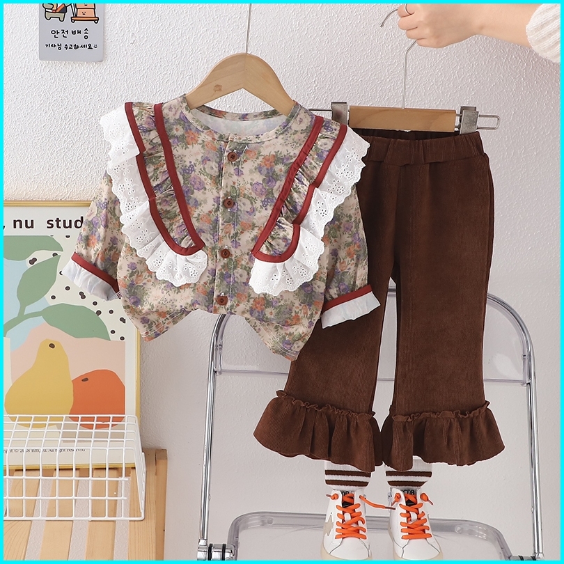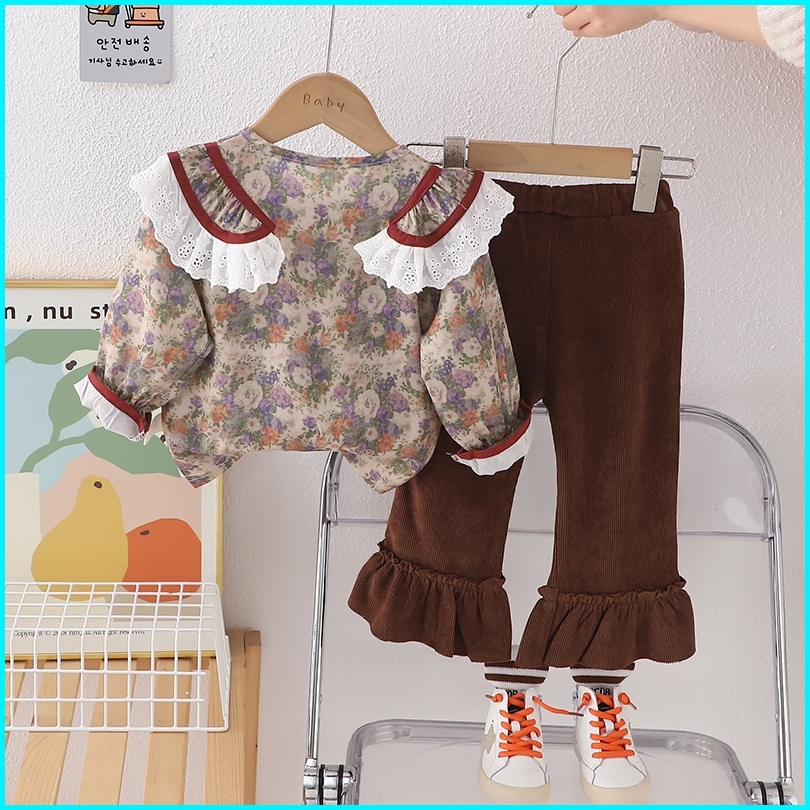 Twinkle Setelan Blouse Anak Perempuan Lengan Panjang Katun Motif Bunga Elegan Style Usia 1-4 Thn