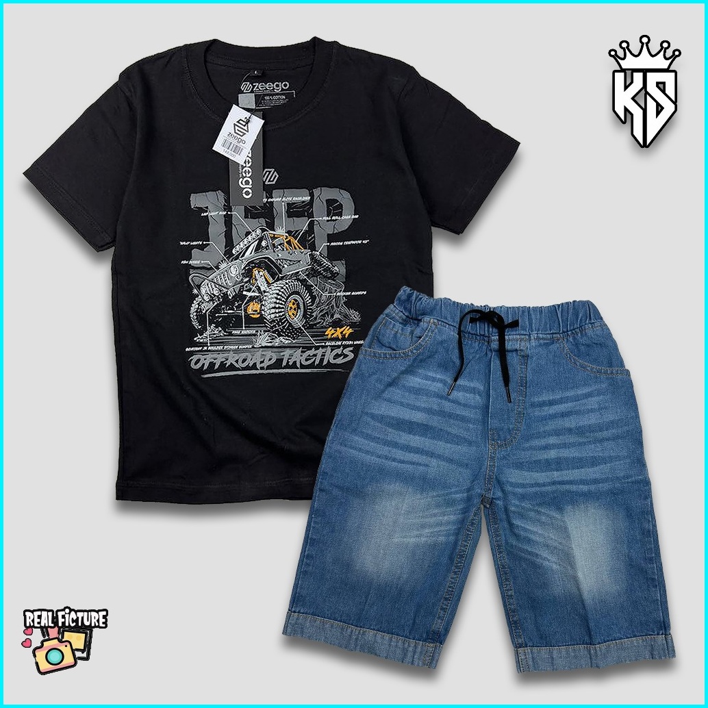 Setelan Anak Celana Jeans Setelan Jeans Anak Laki-laki Setelan Kaos Celana Jeans Usia 3-12 Tahun