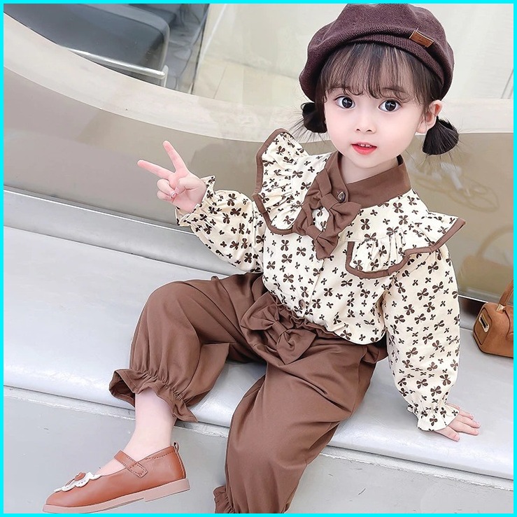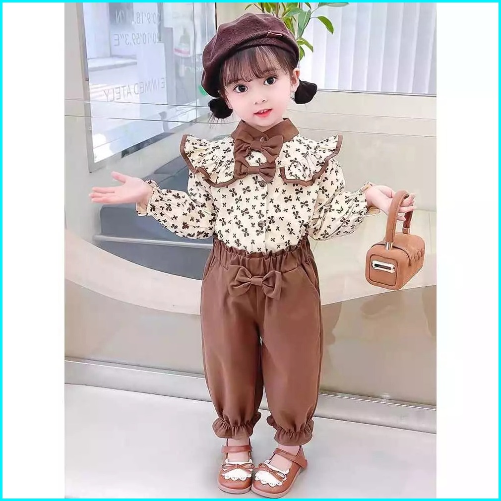 Twinkle Setelan Baju Anak Perempuan Bahan Corduroy Motif Bunga Casual Style Usia 1-4 Tahun