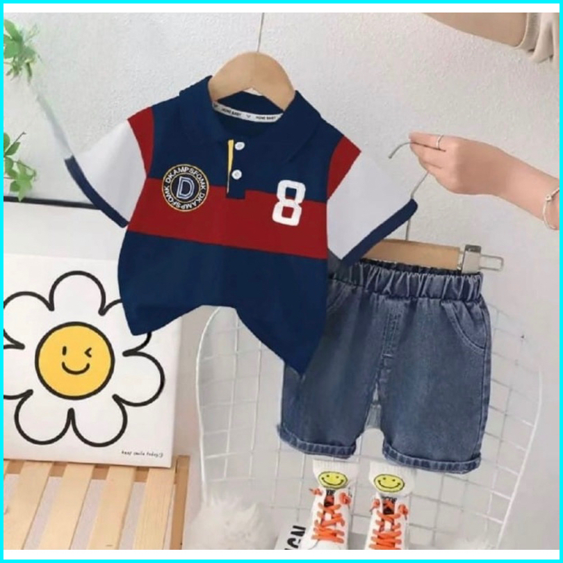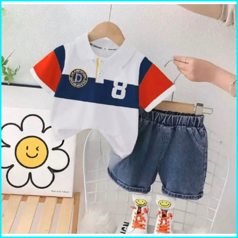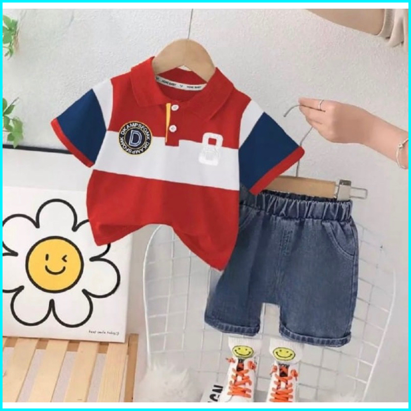 Setelan Anak Laki Laki Berkerah Dan Celana Denim Pendek Anak 1-5 Tahun Ardanbajuanakgrosir