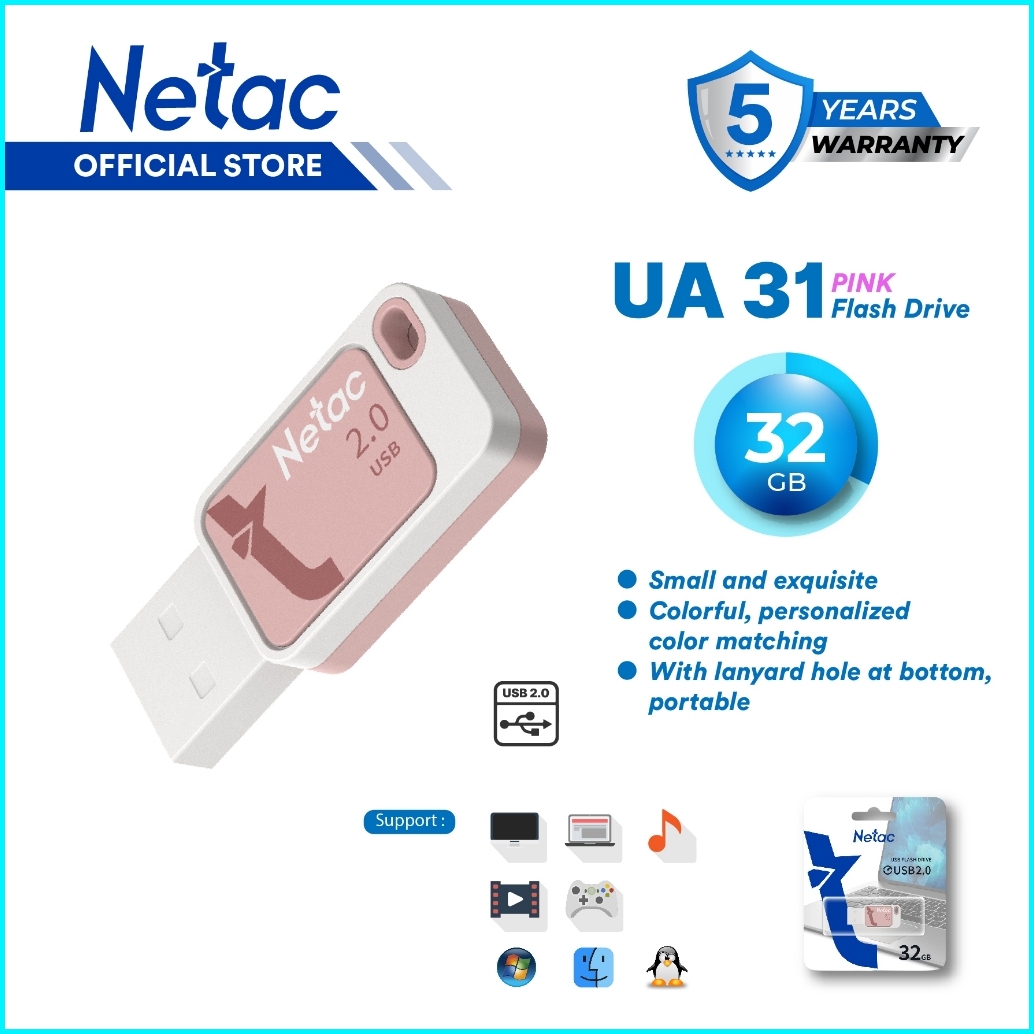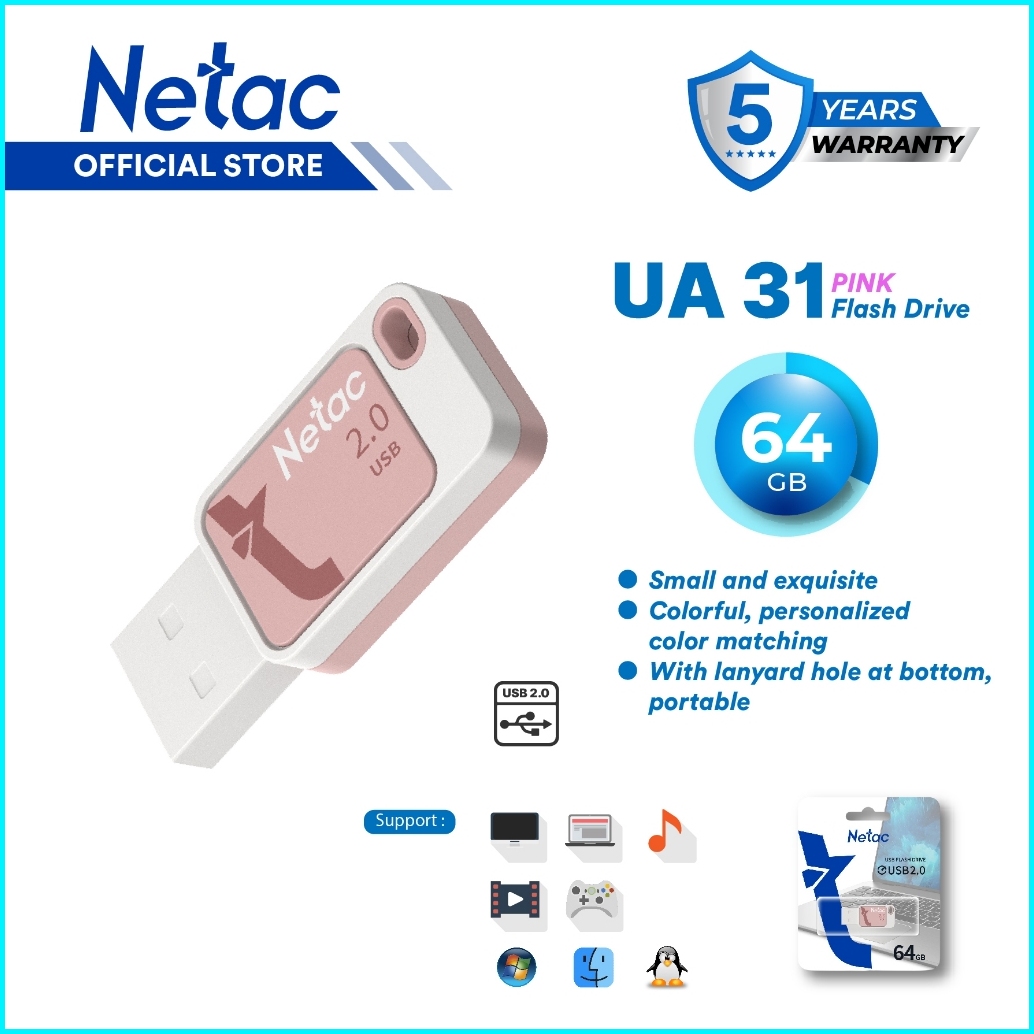 Netac Store - Netac Ua31 Flashdisk Usb 2.0 8gb 16gb 32gb 64gb Pink Flash Drive Jump Drive Full Support For Computers Sma