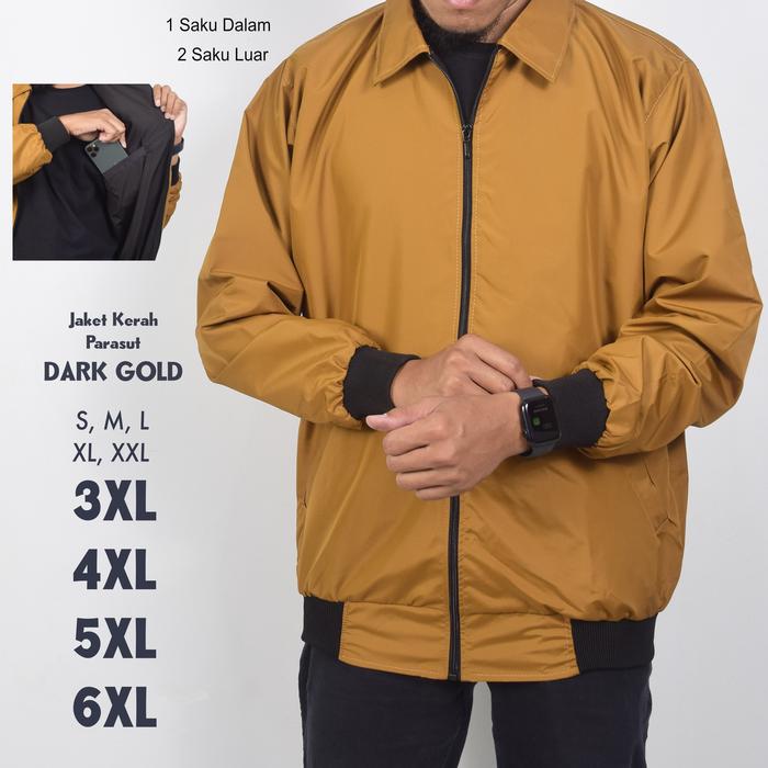 Jaket Kerah Motor Dark Gold Parasut Pria Jumbo Big Size S M L XL XXL 3XL 4XL 5XL 6XL Parasit